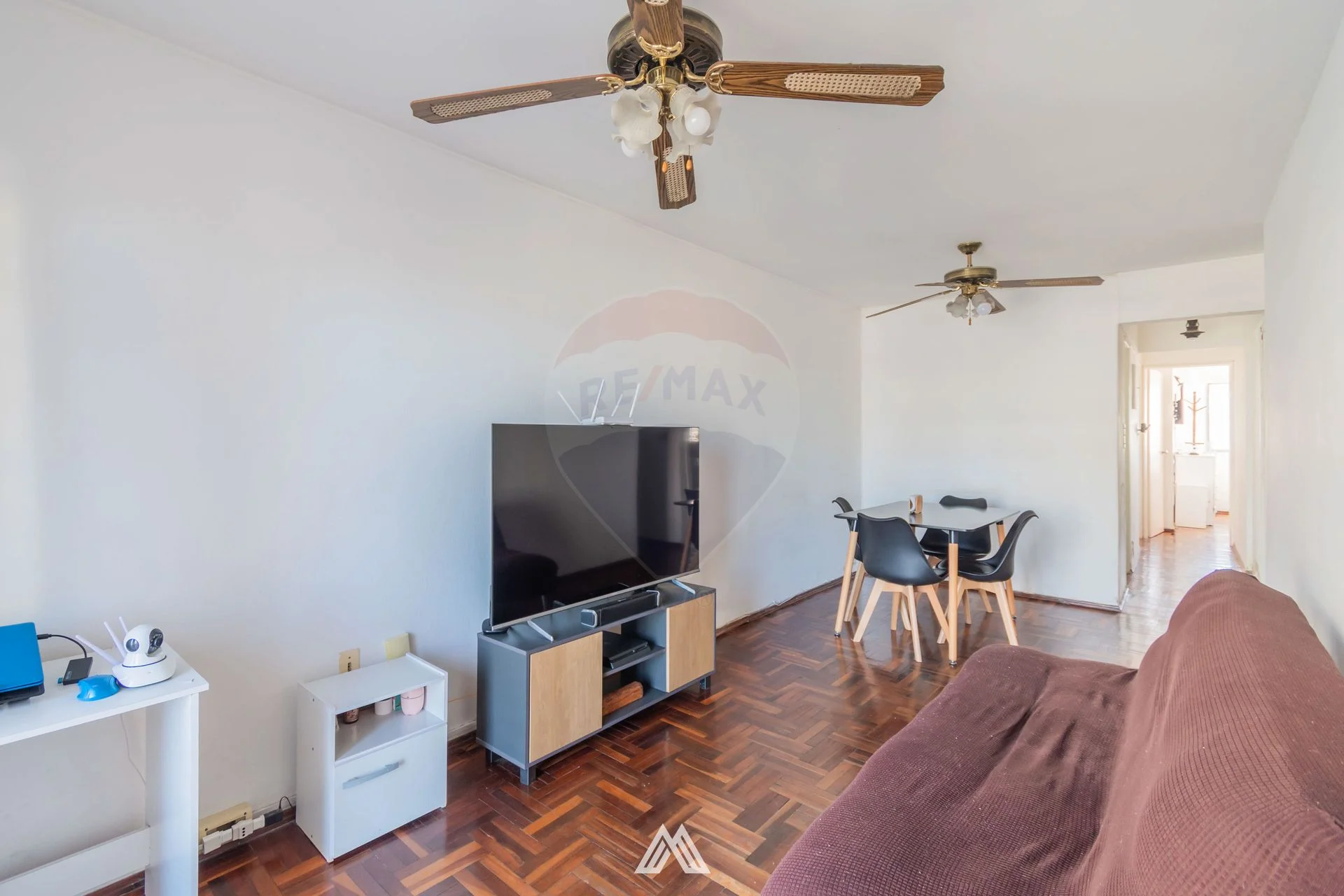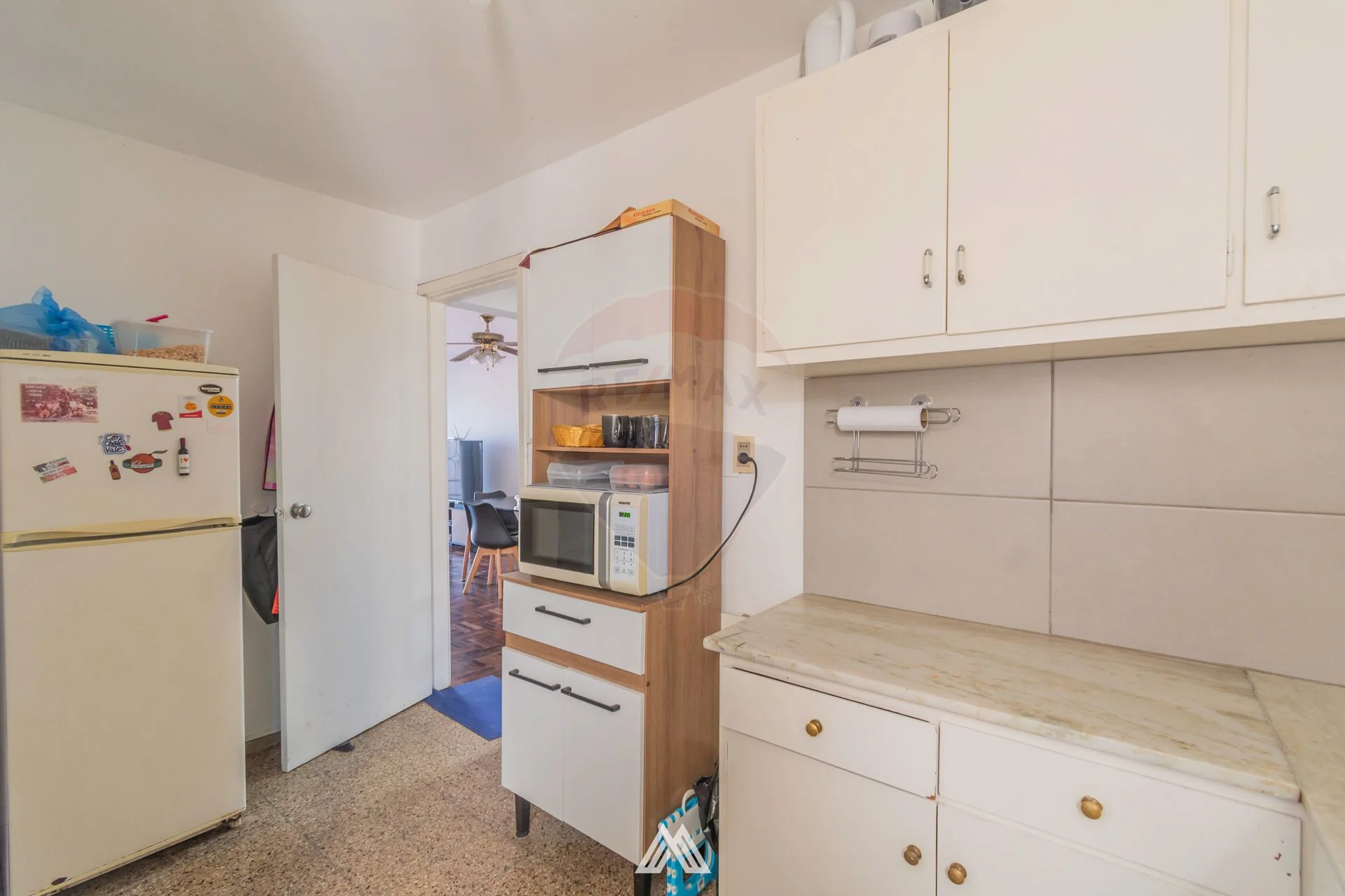 Se accede al apartamento a través de un corredor que desemboca en el estar-comedor, un espacio luminoso que se conecta al balcón con vista hacia Av. Italia, orientación sur.