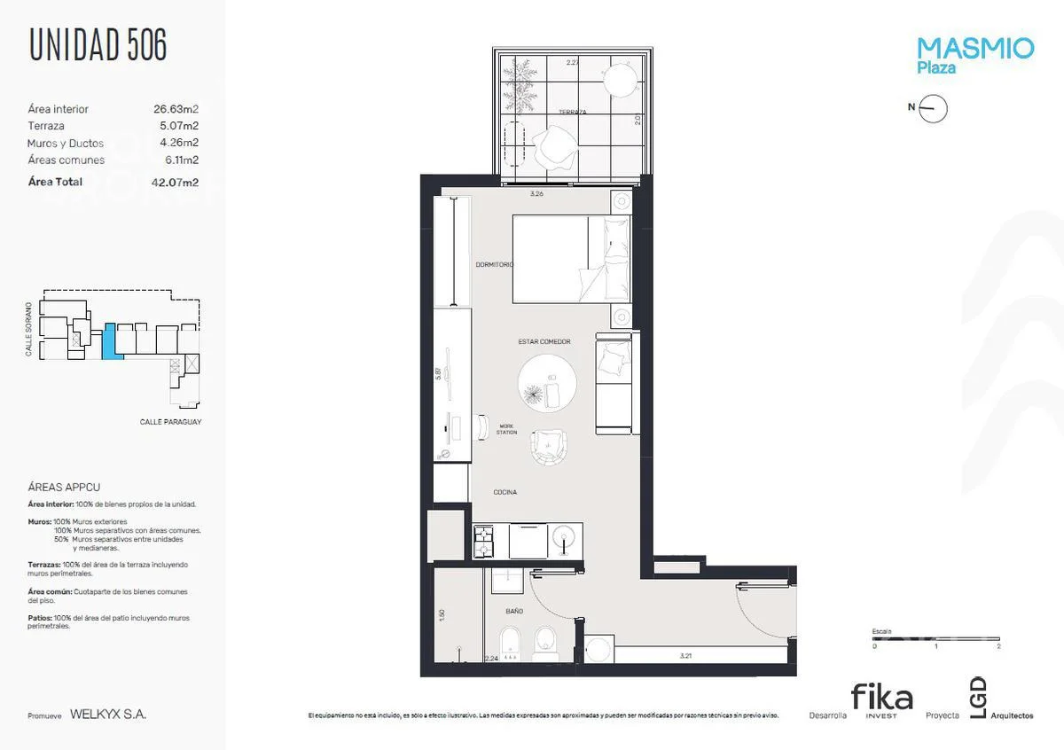 + $ 3,500 Дополнительно / U$S 3,083/m2