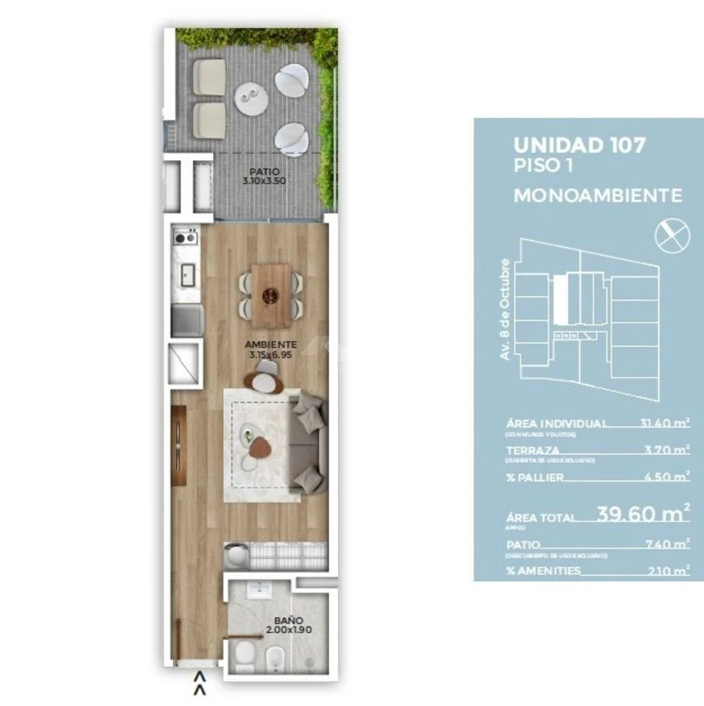8 DE OCTUBRE Y LUIS ALBERTO DE HERRERA... EDIFICIO LOS OLÍMPICOS... EN EL NÚCLEO DE LA CIUDAD, DONDE CONFLUYEN LAS PRINCIPALES AVENIDAS DE MONTEVIDEO... A ESTRENAR DICIEMBRE 2025... LATERAL... MONOAMBIENTE con PATIO, cocina integrada con muebles bajo mesada, anafe y campana de extracción. BAÑO completo. El edificio CUENTA CON PISCINA CON DECK, 2 SUM INTEGRABLES con PARRILLEROS y TERRAZAS equipadas, GIMNASIO, espacio COWORK, MICROCINE y LAUNDRY.