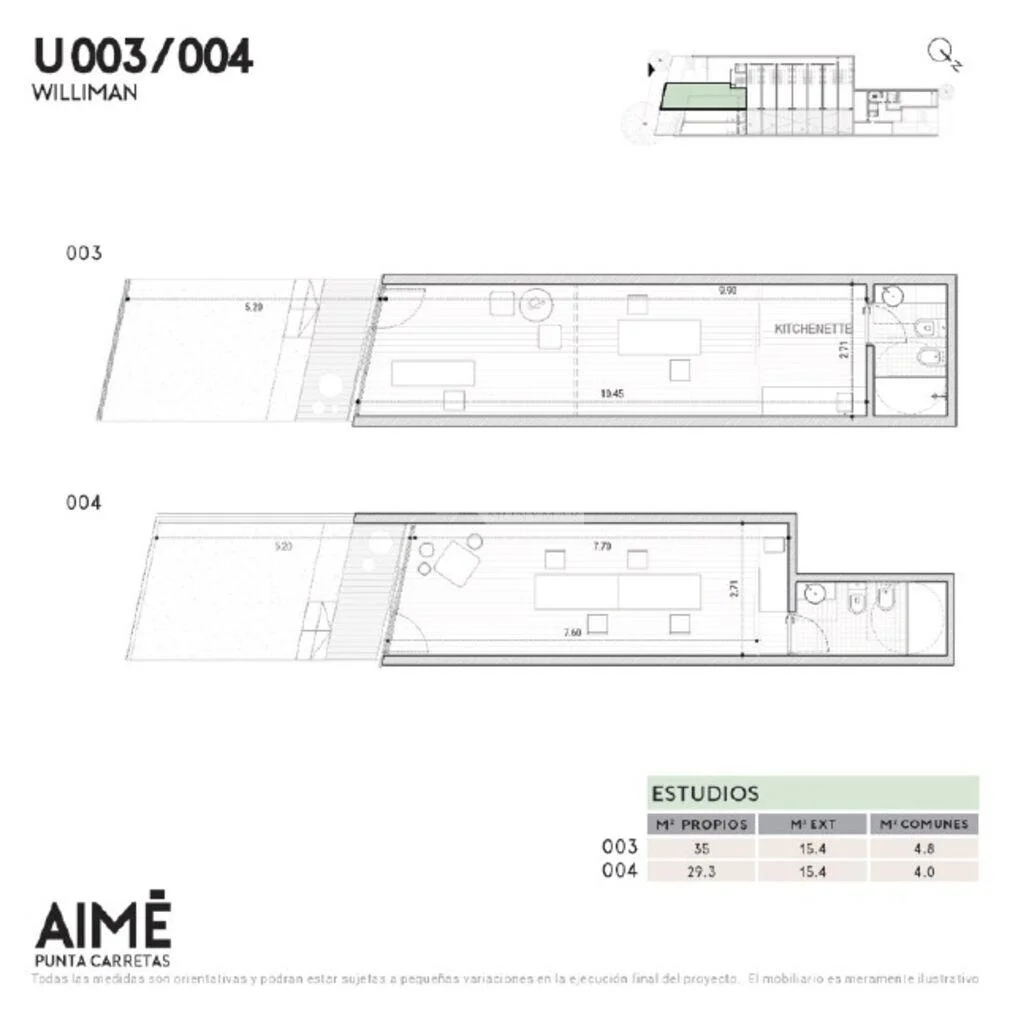 003 - 004) 35m2 área privada + 4,8m2 área común + 15,4m2 patio = 55,2m2 totales.
