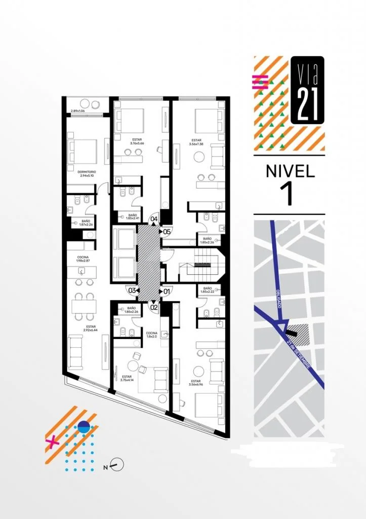 *Nota: para el metraje se tomó en cuenta los muros medianeros: entre apartamentos (desde el eje del muro), entre departamentos y superficies comunes (en su totalidad), los muros exteriores y terrazas en su totalidad y la cuota parte de caja de escalera y palier.