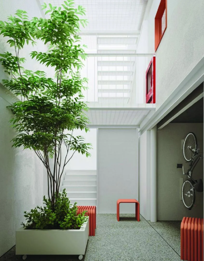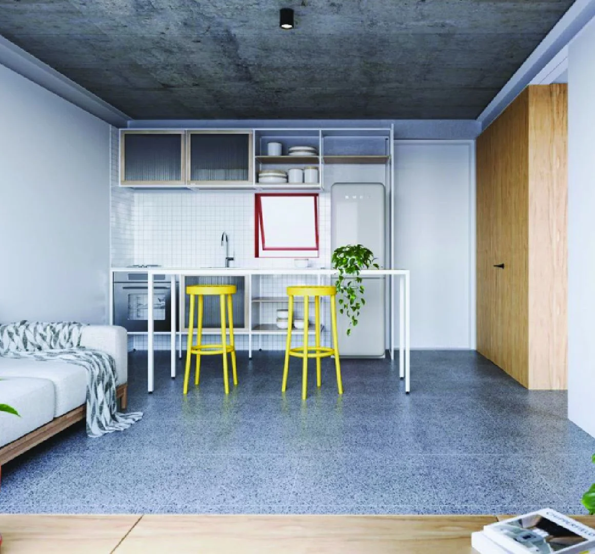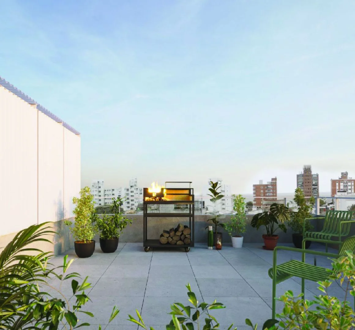 El edificio ofrece una excelente calidad constructiva y un gran nivel de terminaciones, el mismo contará con pisos monolíticos pulidos, aberturas en aluminio, toldo de protección solar, previsión para aire, cocina equipada con campana y mesadas de granito, laundry y bicicleteros.