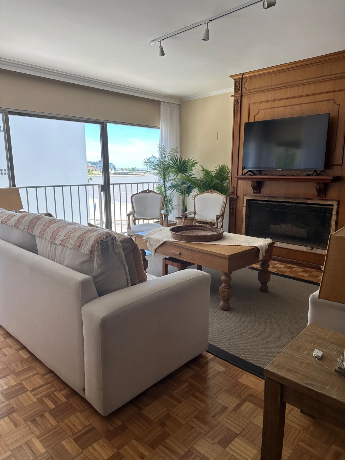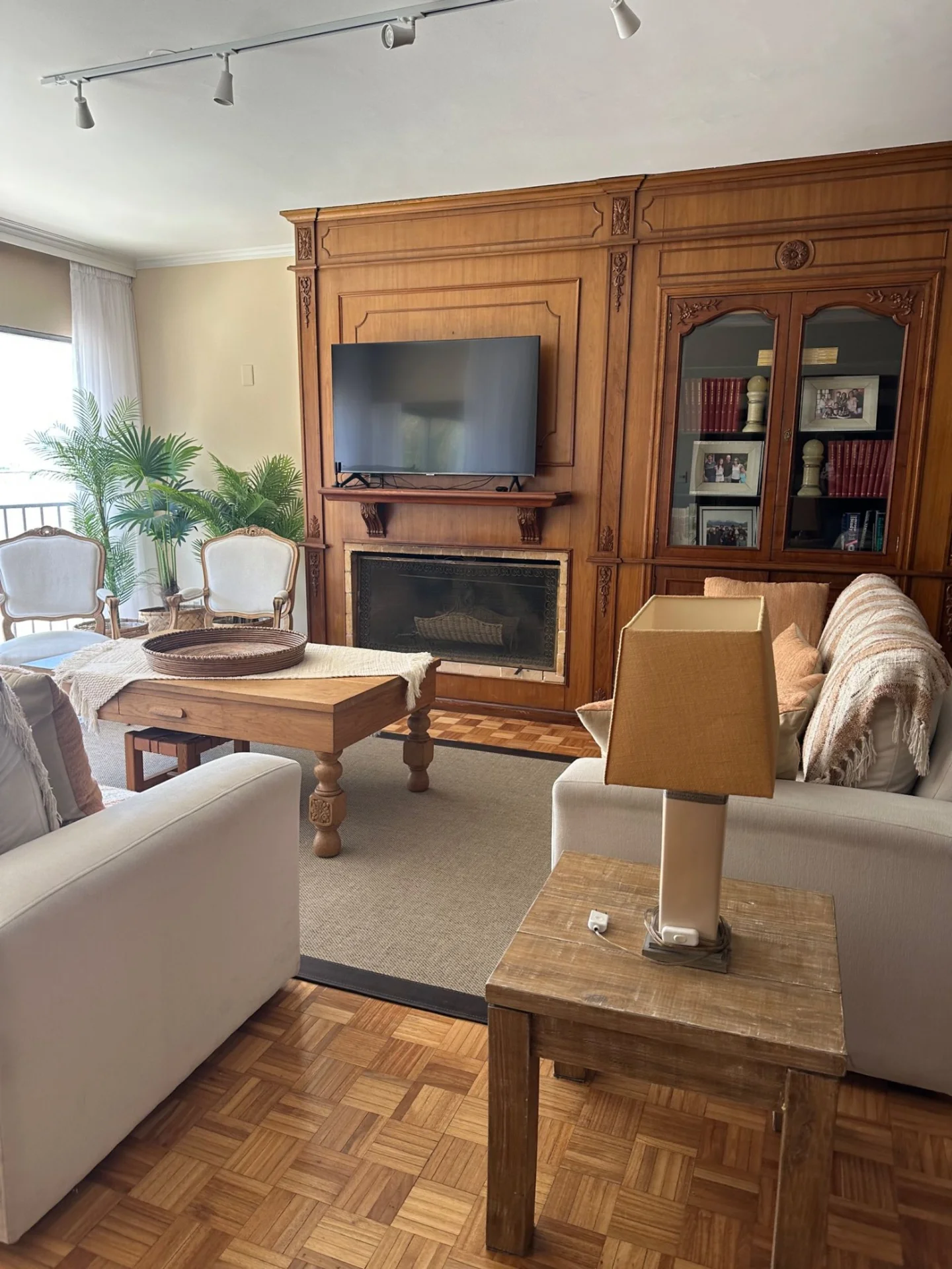 Estar al frente con aire acondicionado separado del living con puerta corrediza.