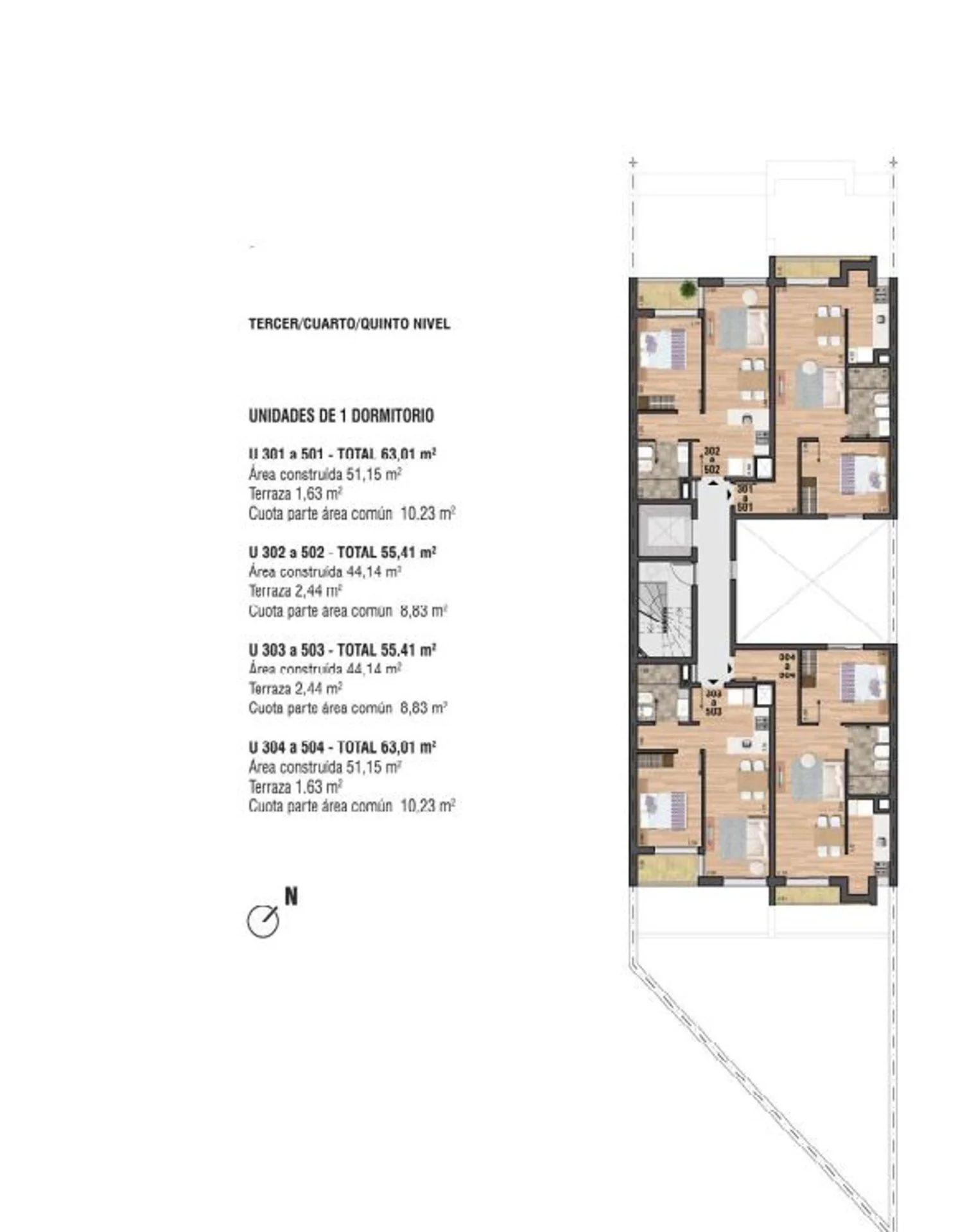 Unidad / Tipología / Área construida / Terrazas / Total m2 / Precio lista