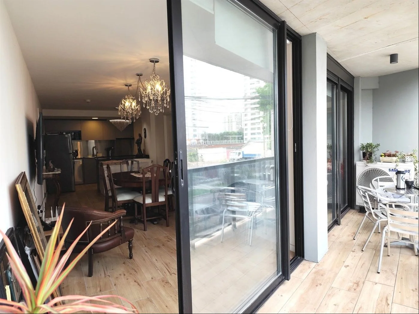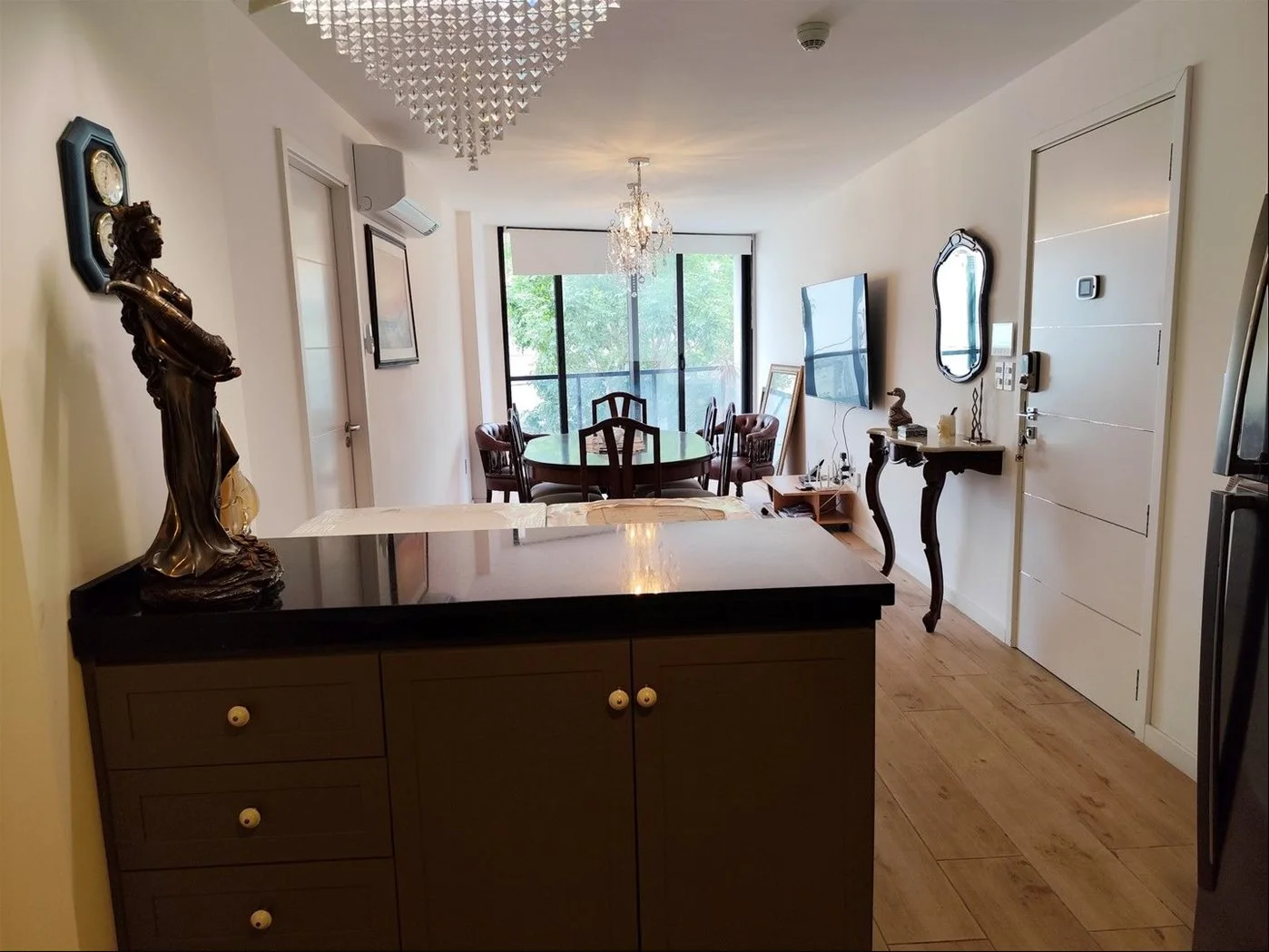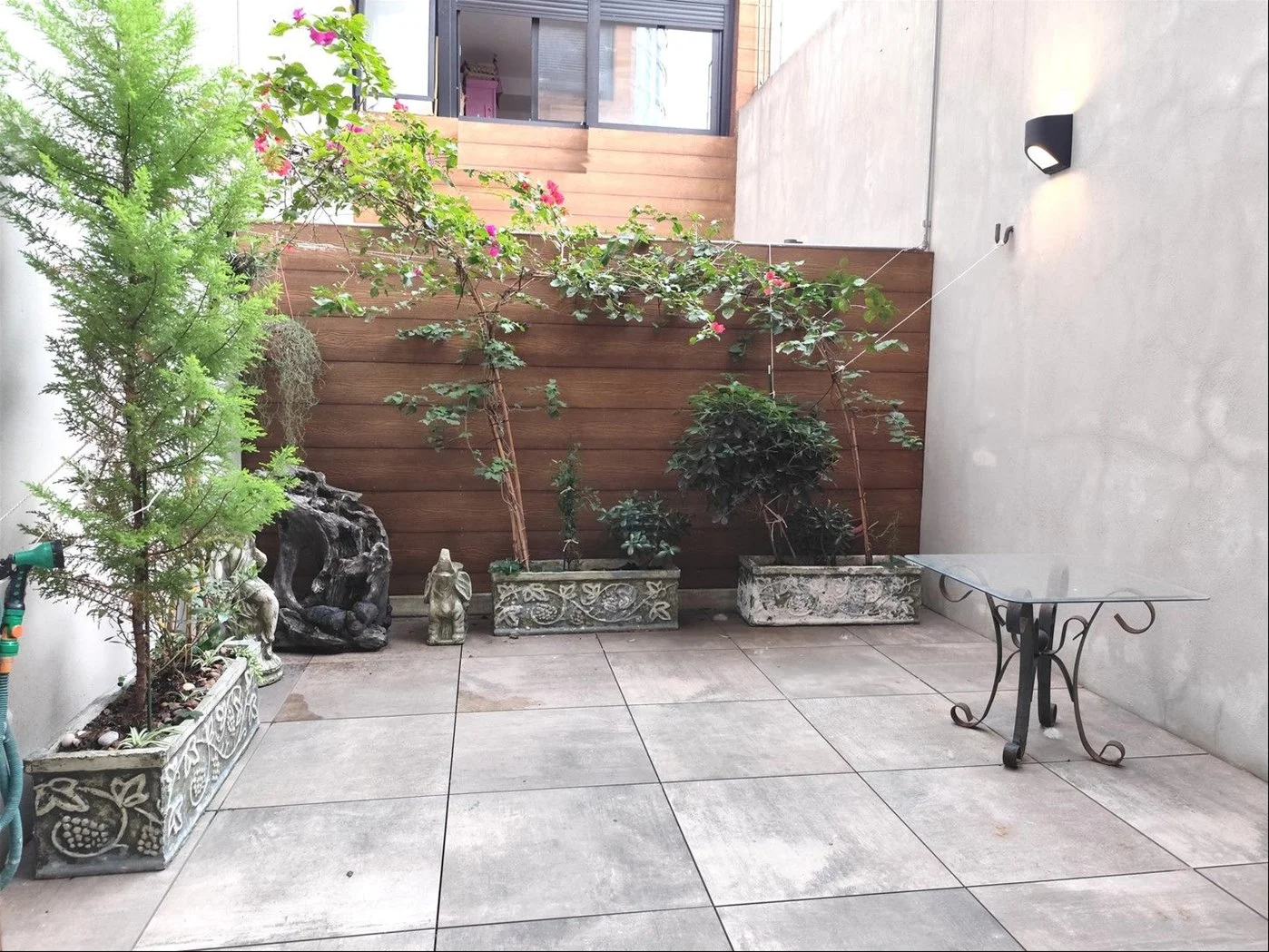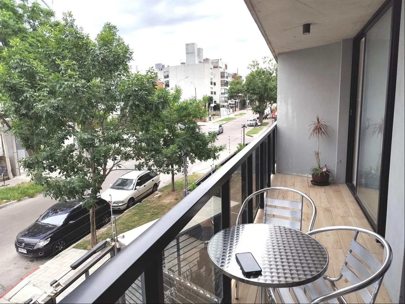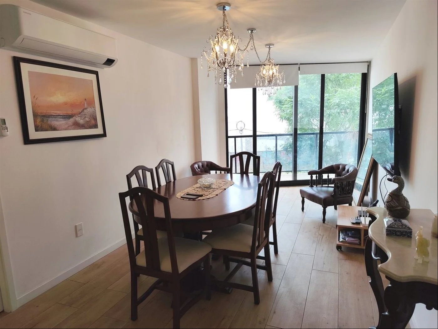 Living-comedor con cocina integrada y salida a una terraza acogedora. Dos dormitorios muy bien resueltos: uno al frente con terraza y otro en suite al contrafrente con un patio exclusivo.
