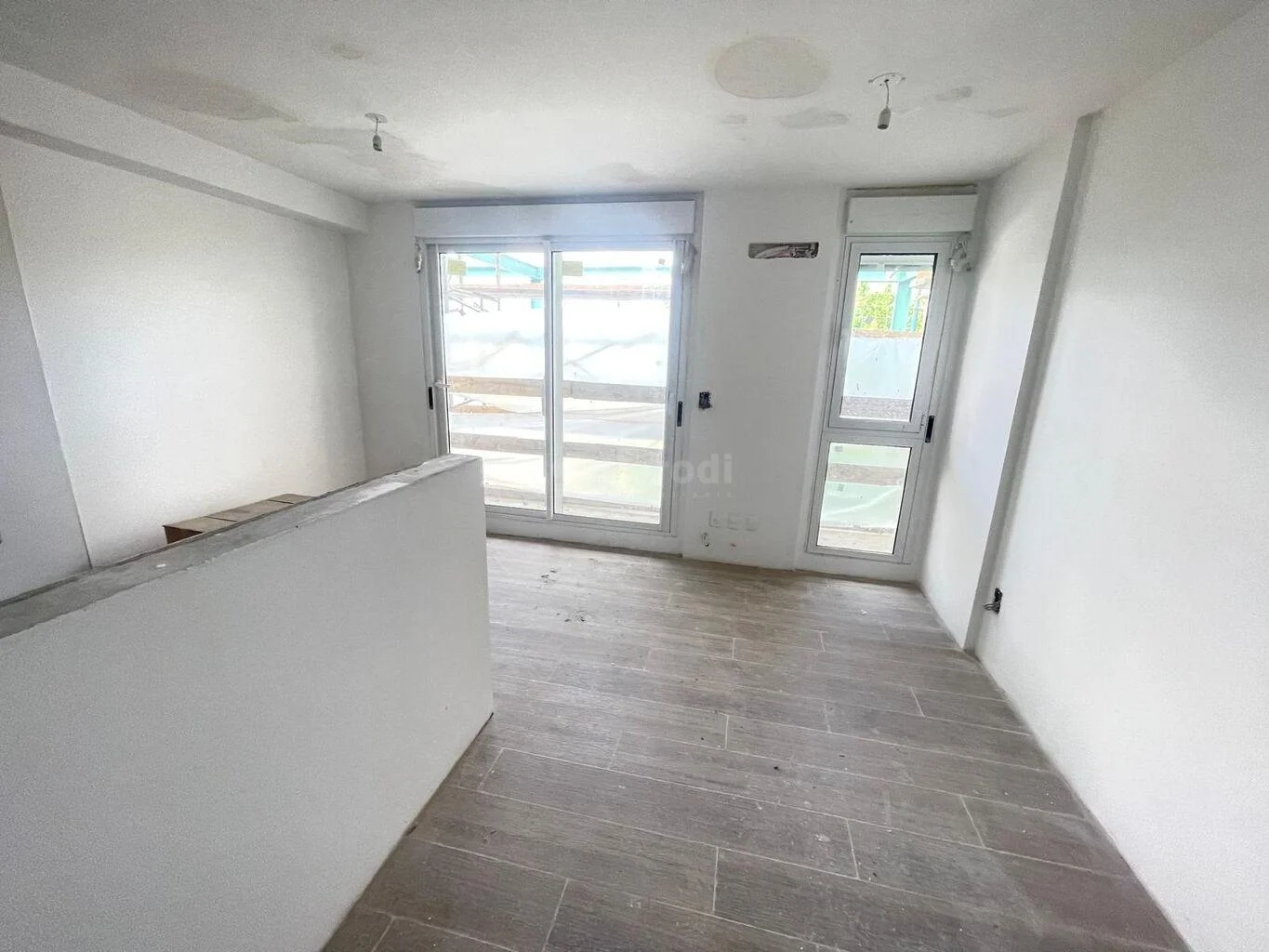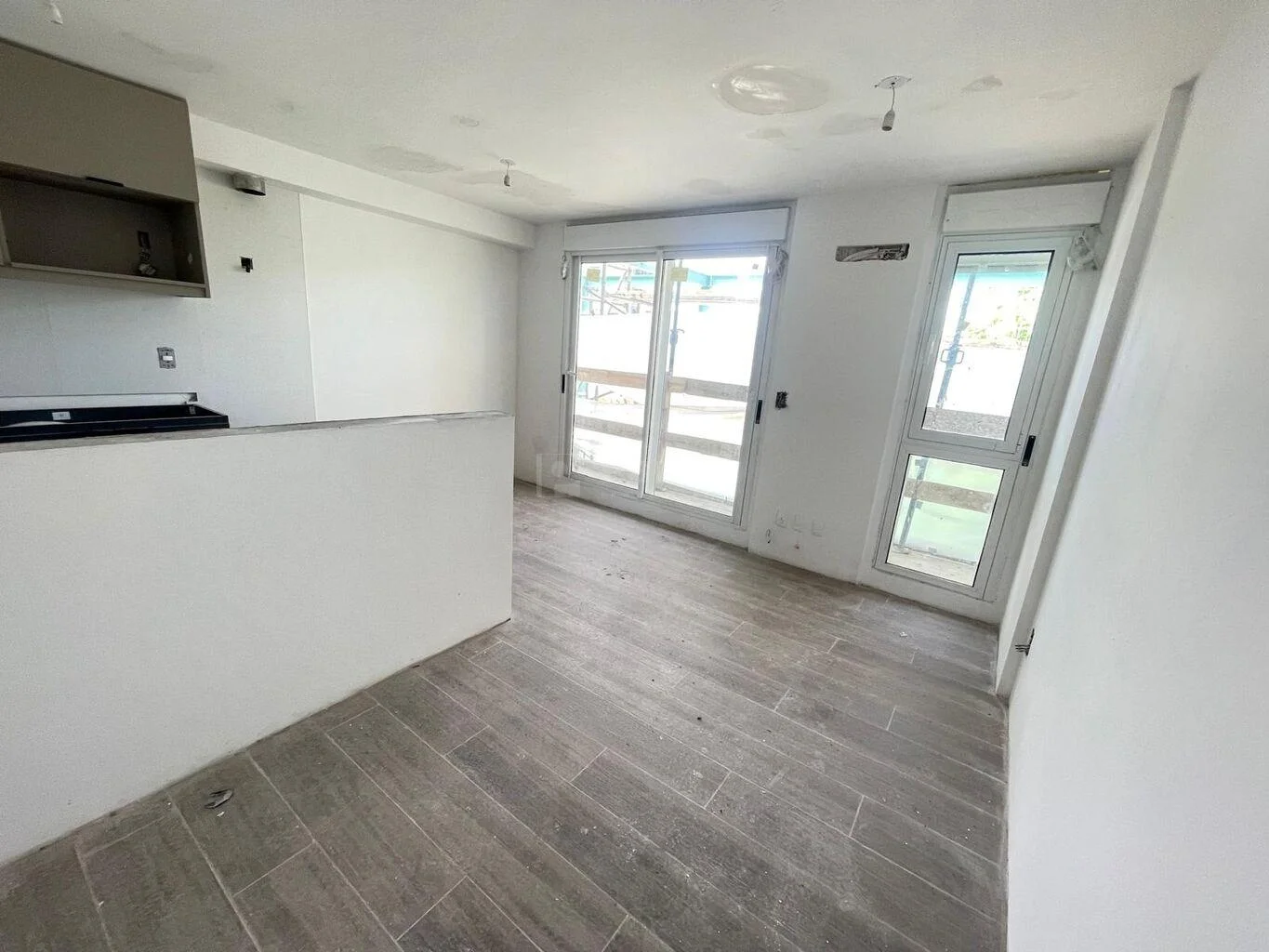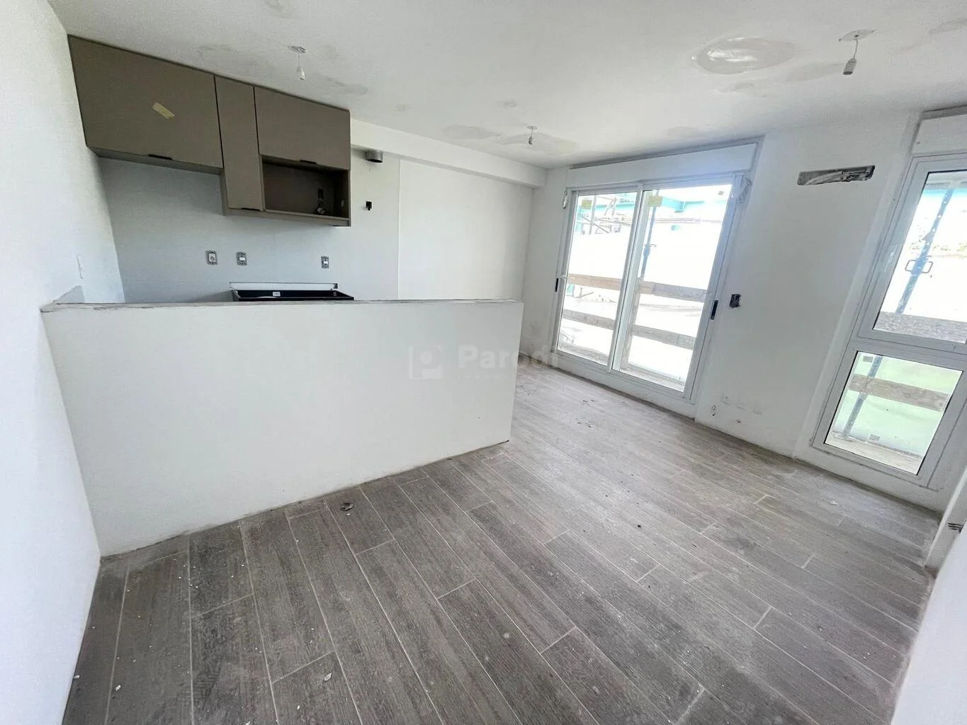 Living comedor con cocina integrada, salida a terraza, baño social y dormitorio en suite