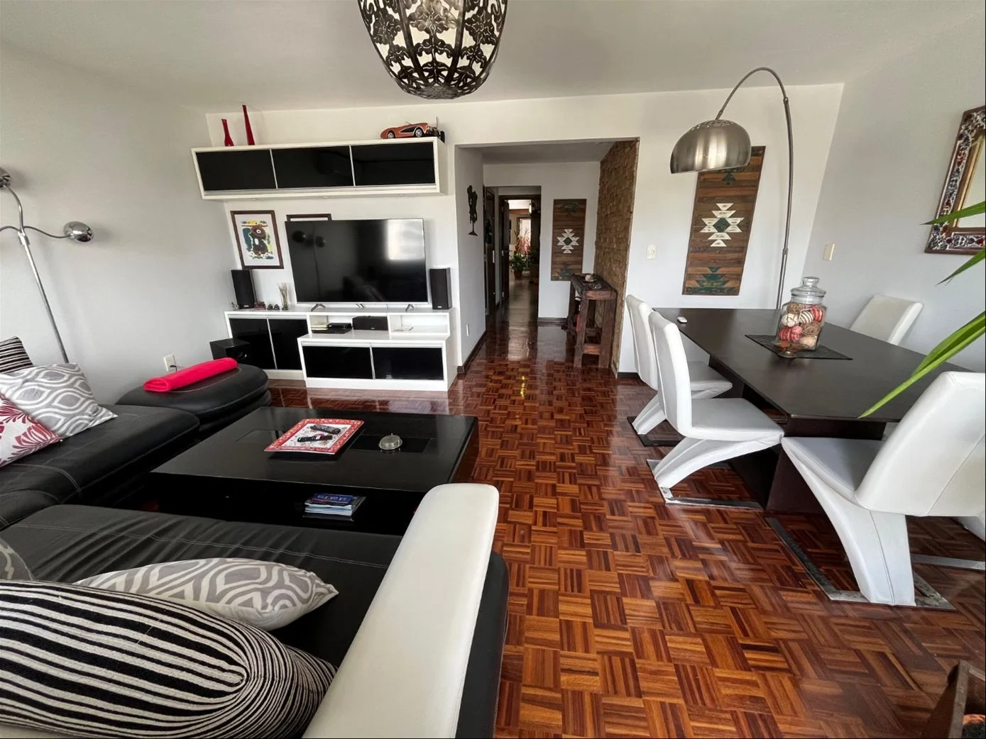 Living comedor apaisado con parquet hidrolaqueado.