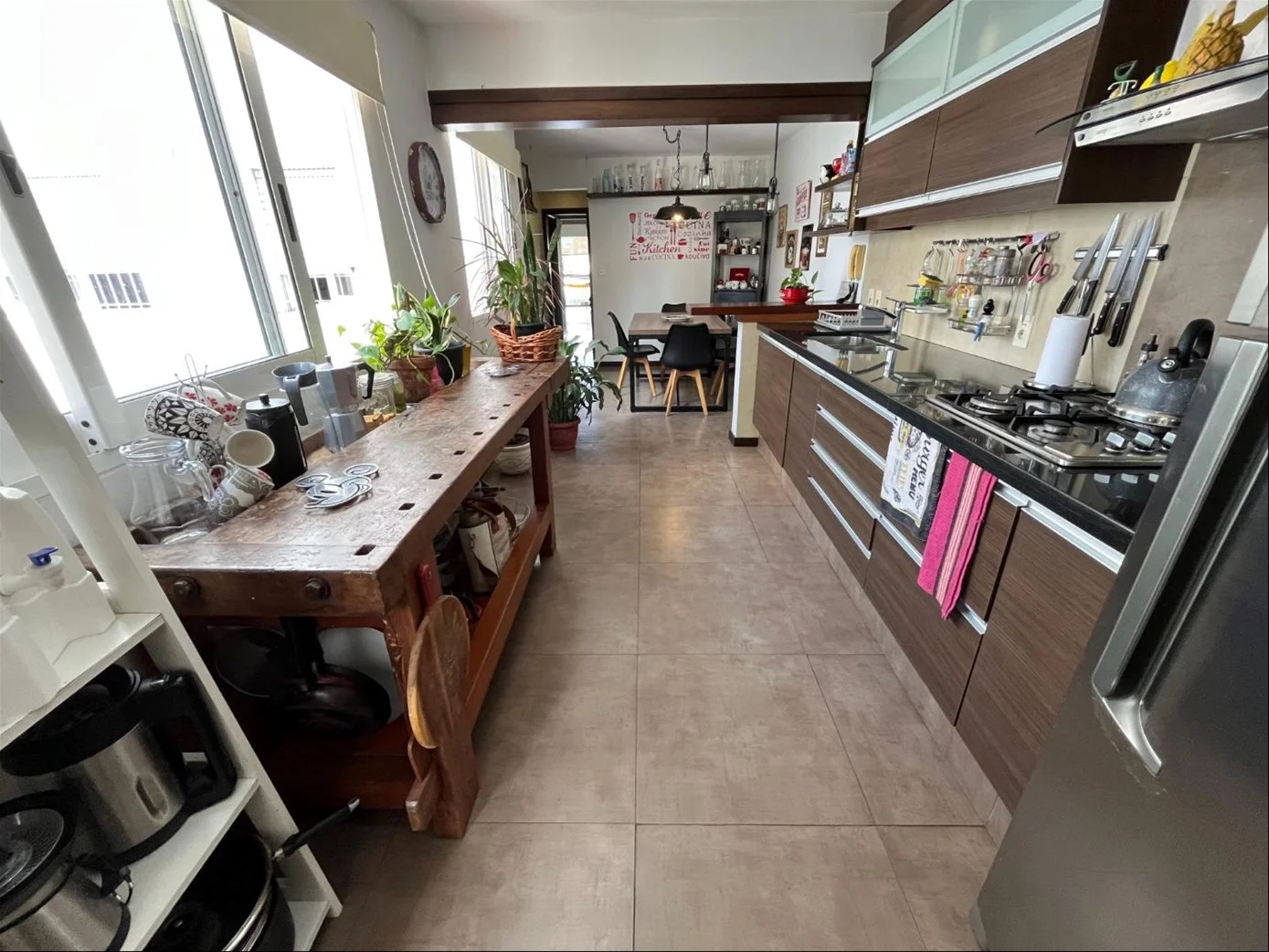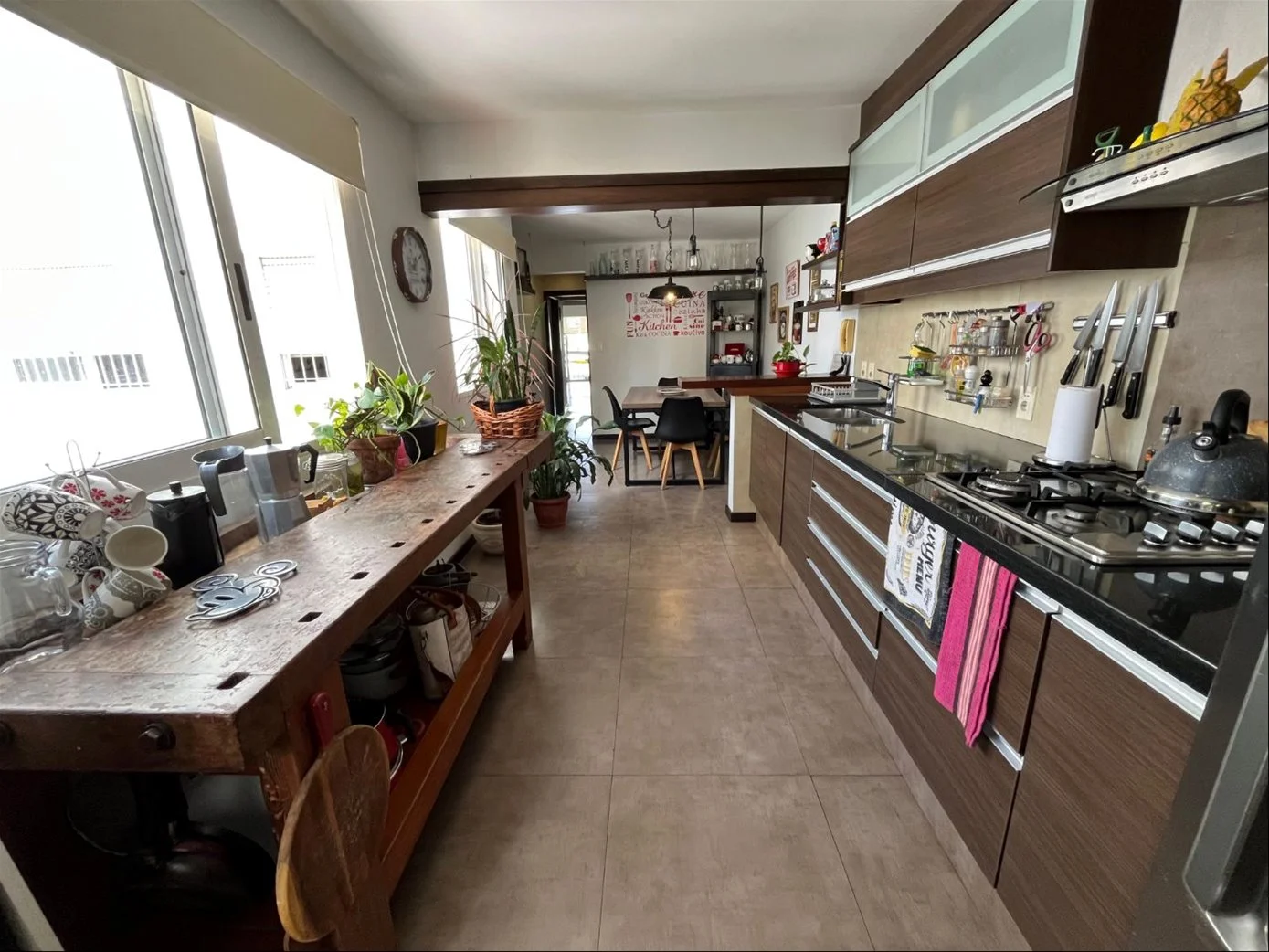 Cocina definida muy luminosa con desayunador y excelente mobiliario.