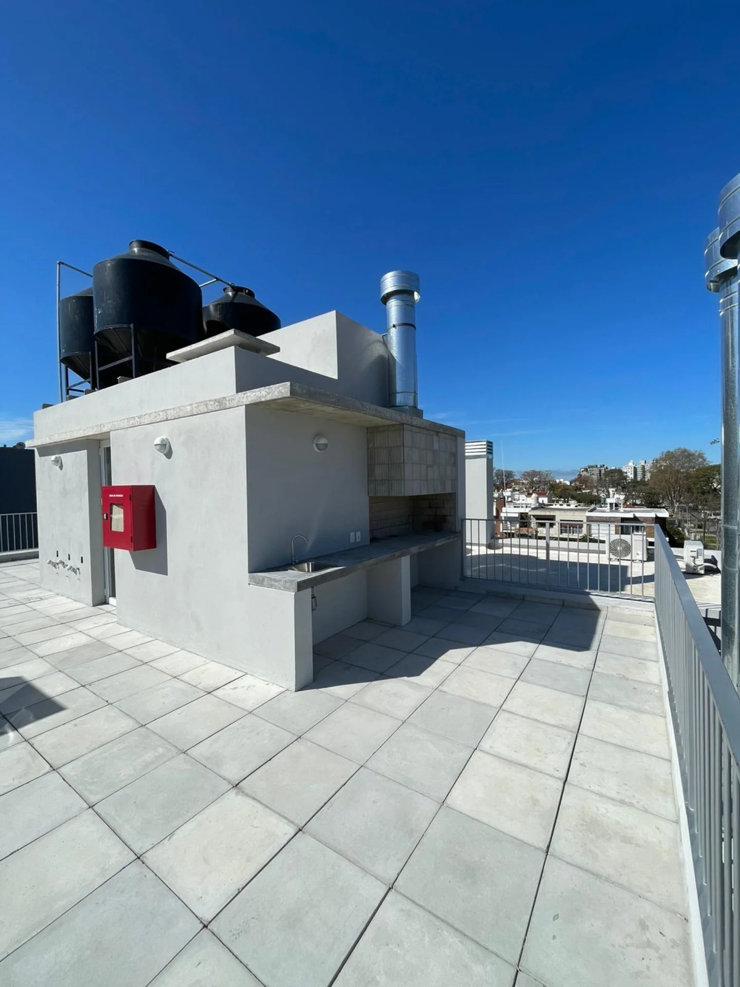 Solárium, tender, previsión para lavarropas en azotea, parrillero abierto, baño social.