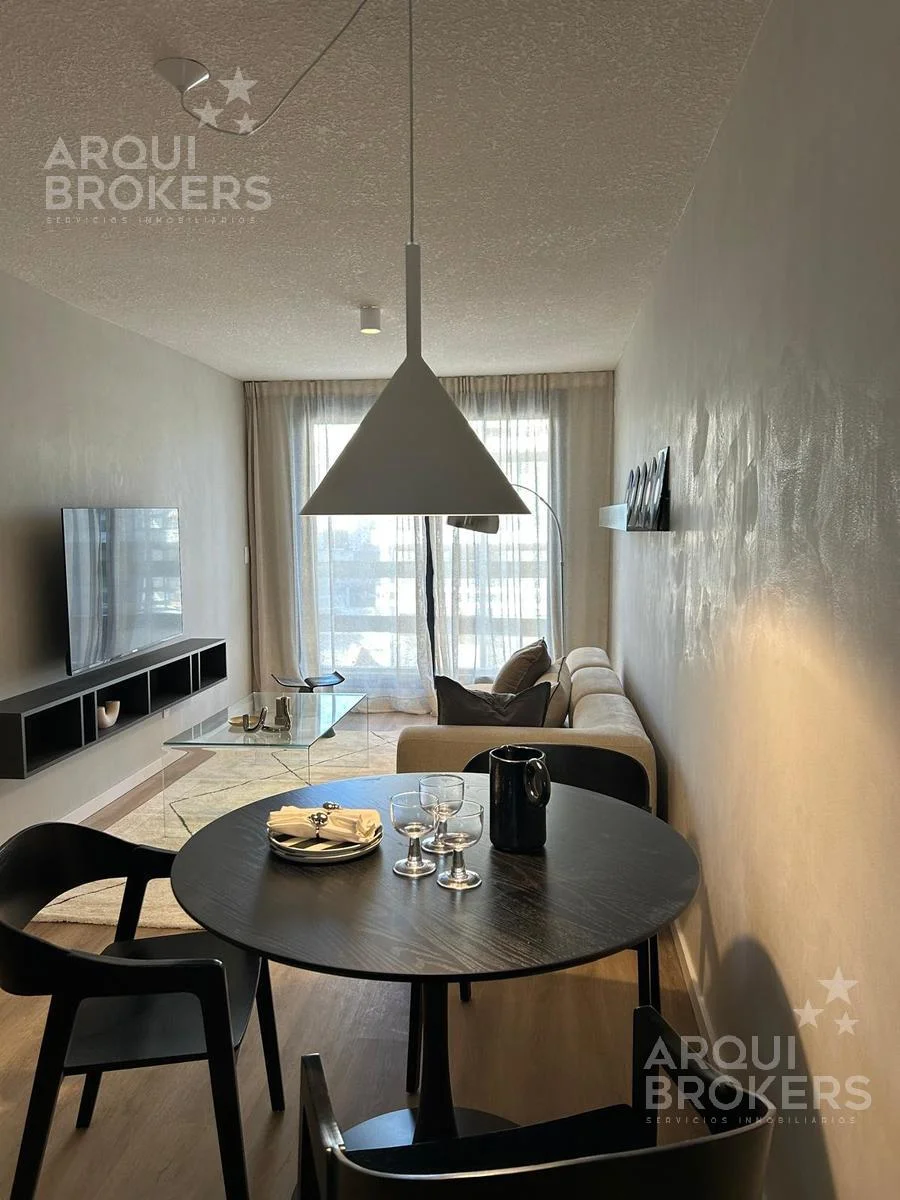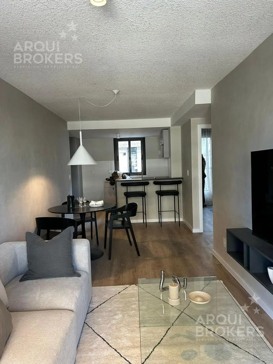 Living comedor con terraza, cocina integrada, 1 dormitorio y 1 baño completo.