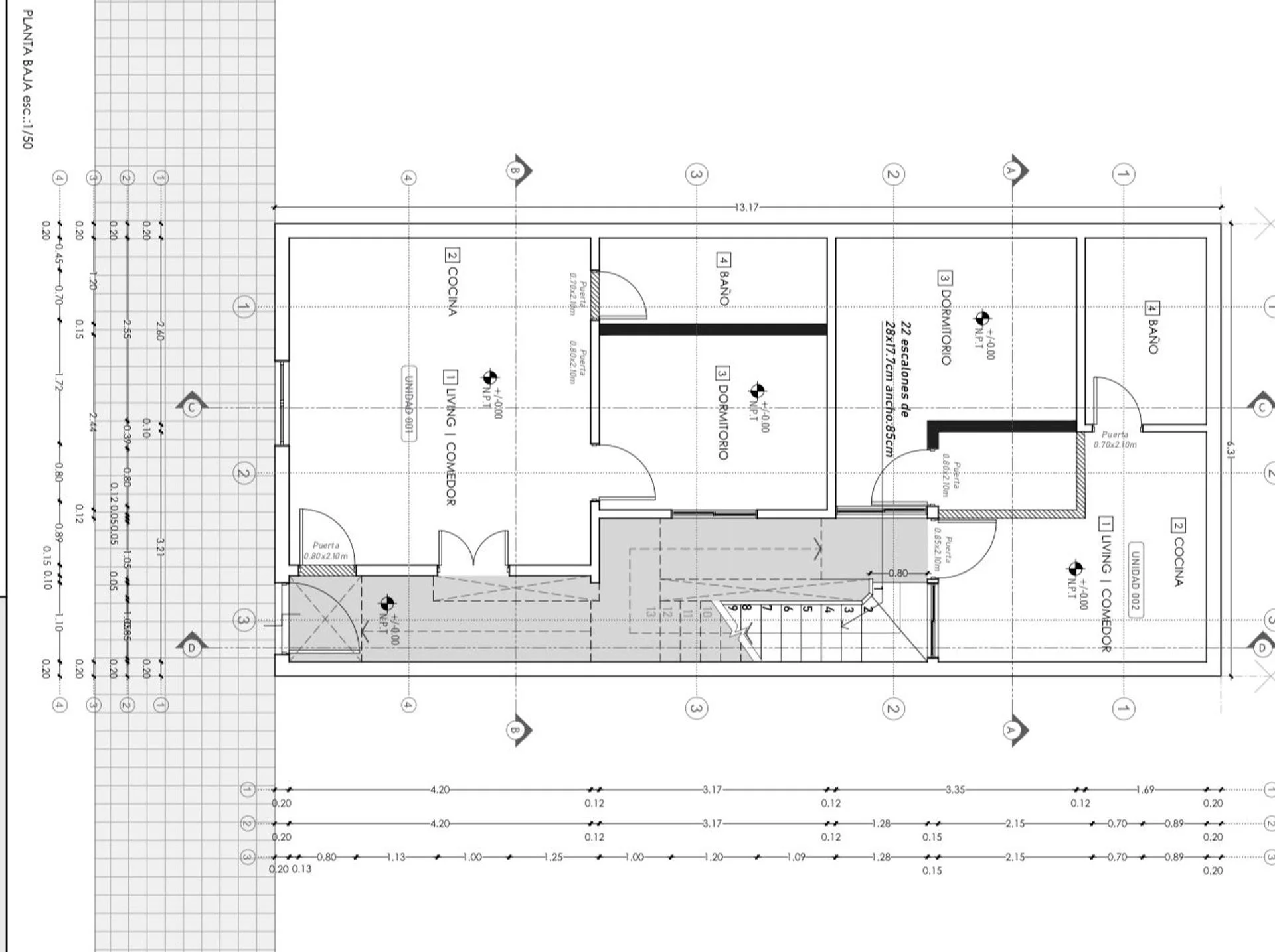 Planta baja: 2 unidades de 1 dormitorio – 30 m² c/u
