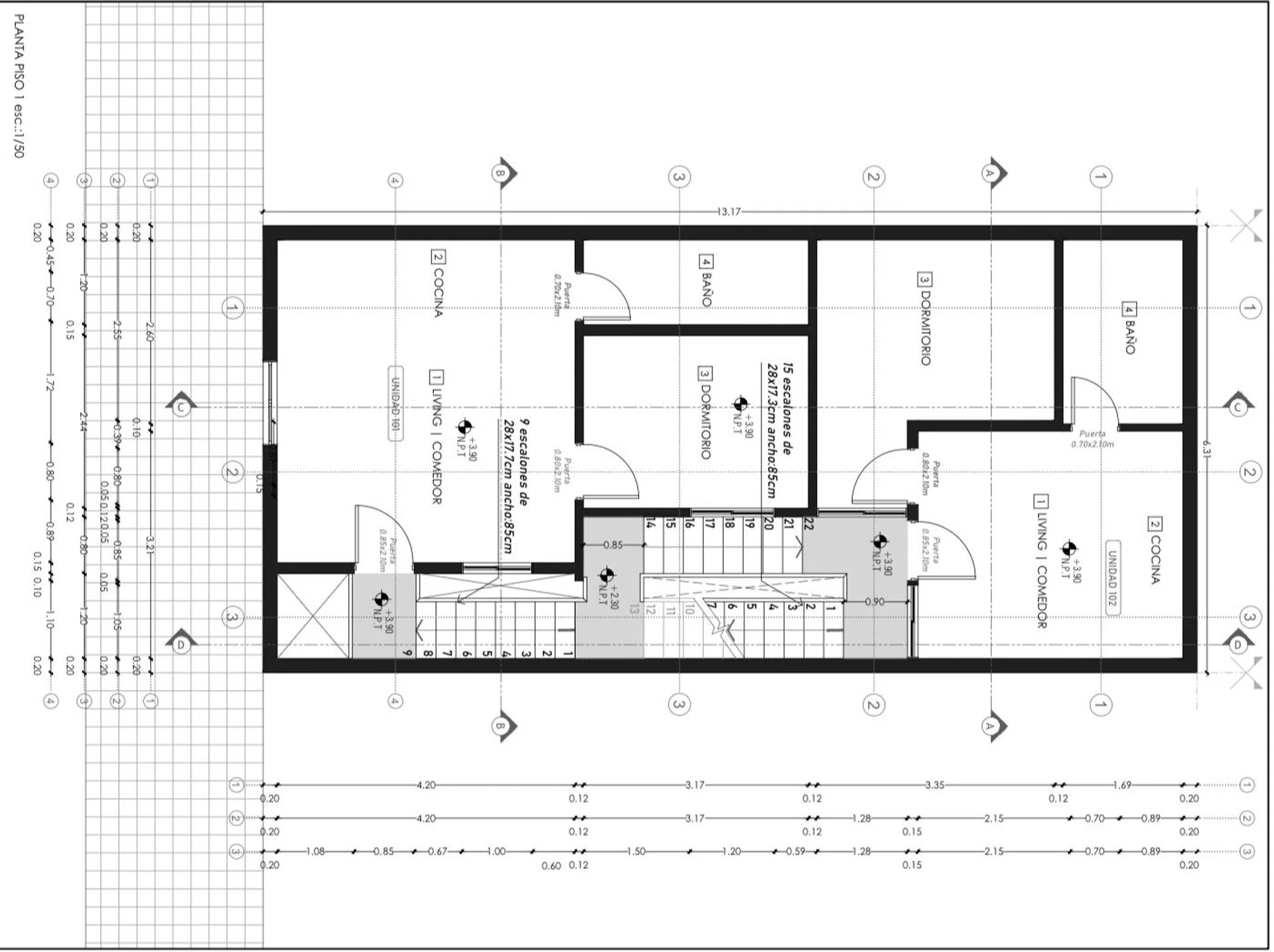 Primer piso: 2 unidades de 1 dormitorio – 30 m² c/u (acceso por escalera)