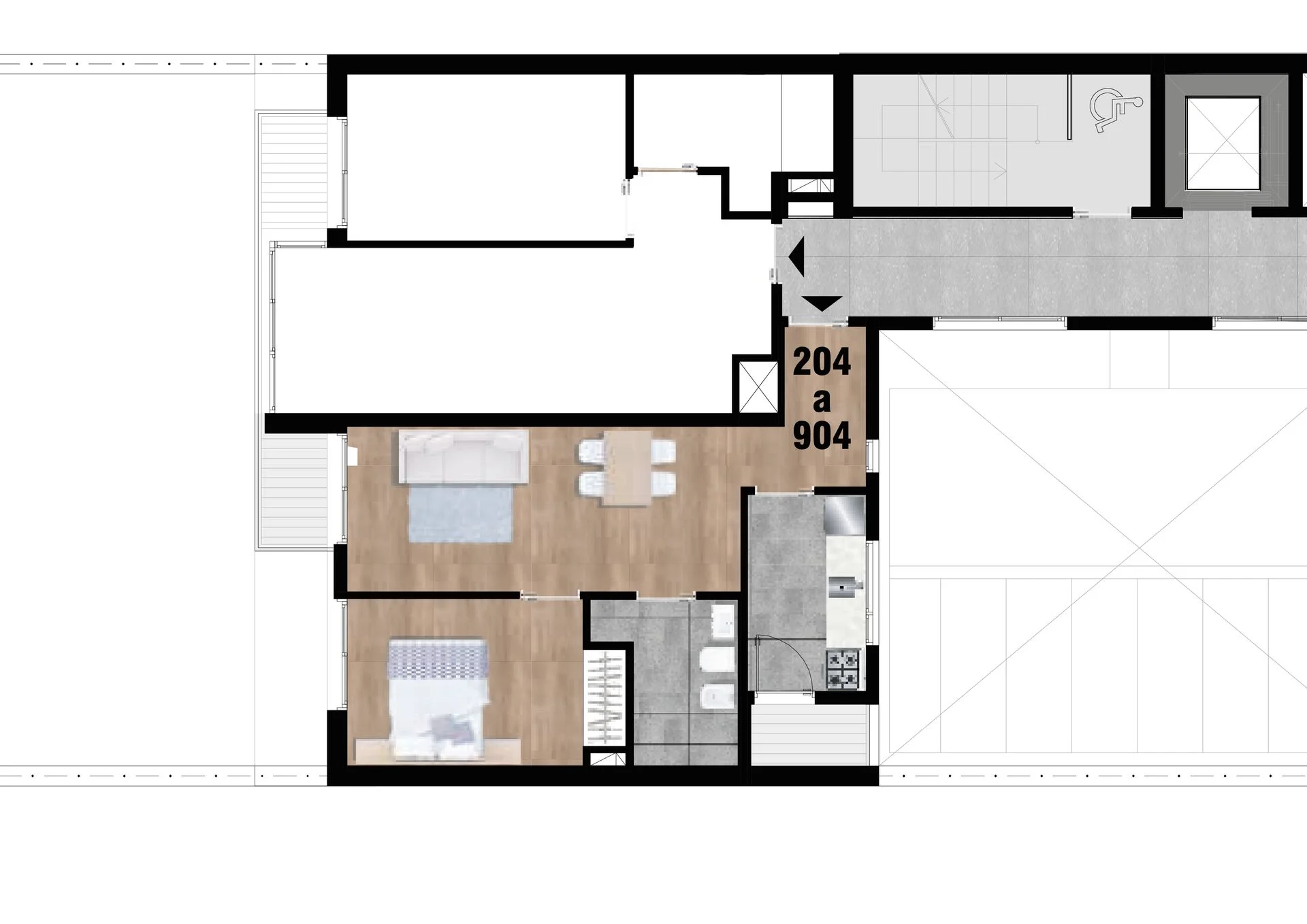 - Apartamento de 1 dormitorio con mayor metraje que la media del segmento: 58 m² (51m² interiores + 7m² de balcones).