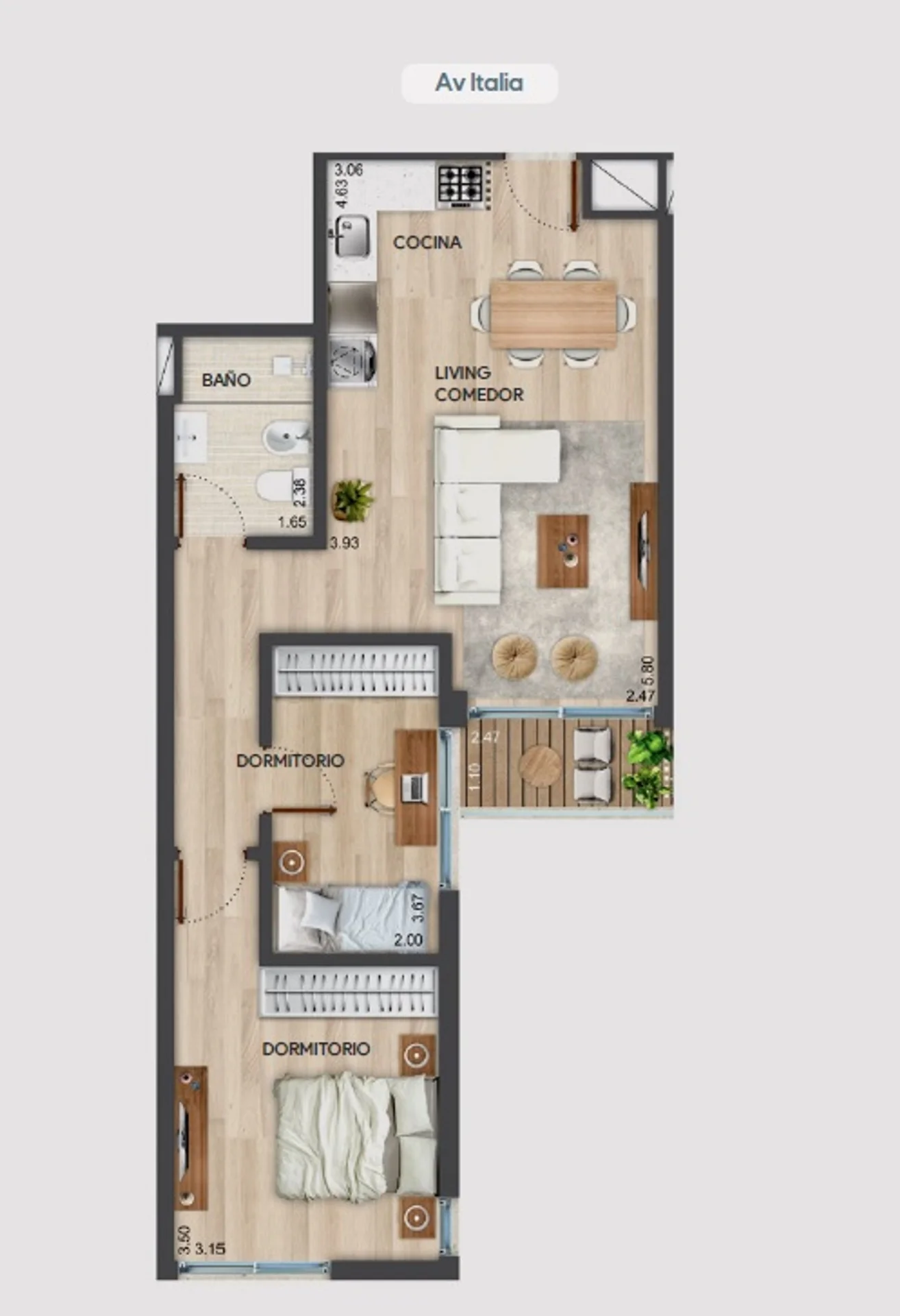 Apartamento en obra, ubicado Av. Italia y Estivao, proyecto Grou Habitat. Estrena Junio 2026.