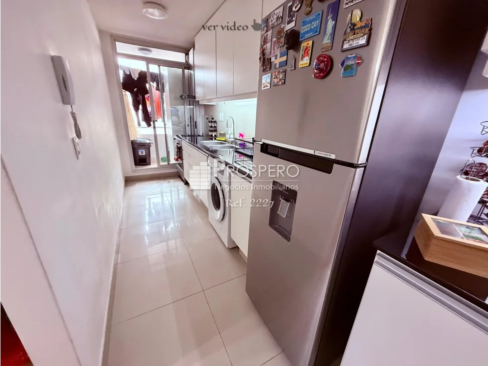 Living-comedor con aire acondicionado y gran ventanal con buena luz natural, cocina semi definida equipada con; muebles aéreos y bajo mesada, barra desayunadora y campana extractora, ademas cuenta con salida a terraza lavadero.