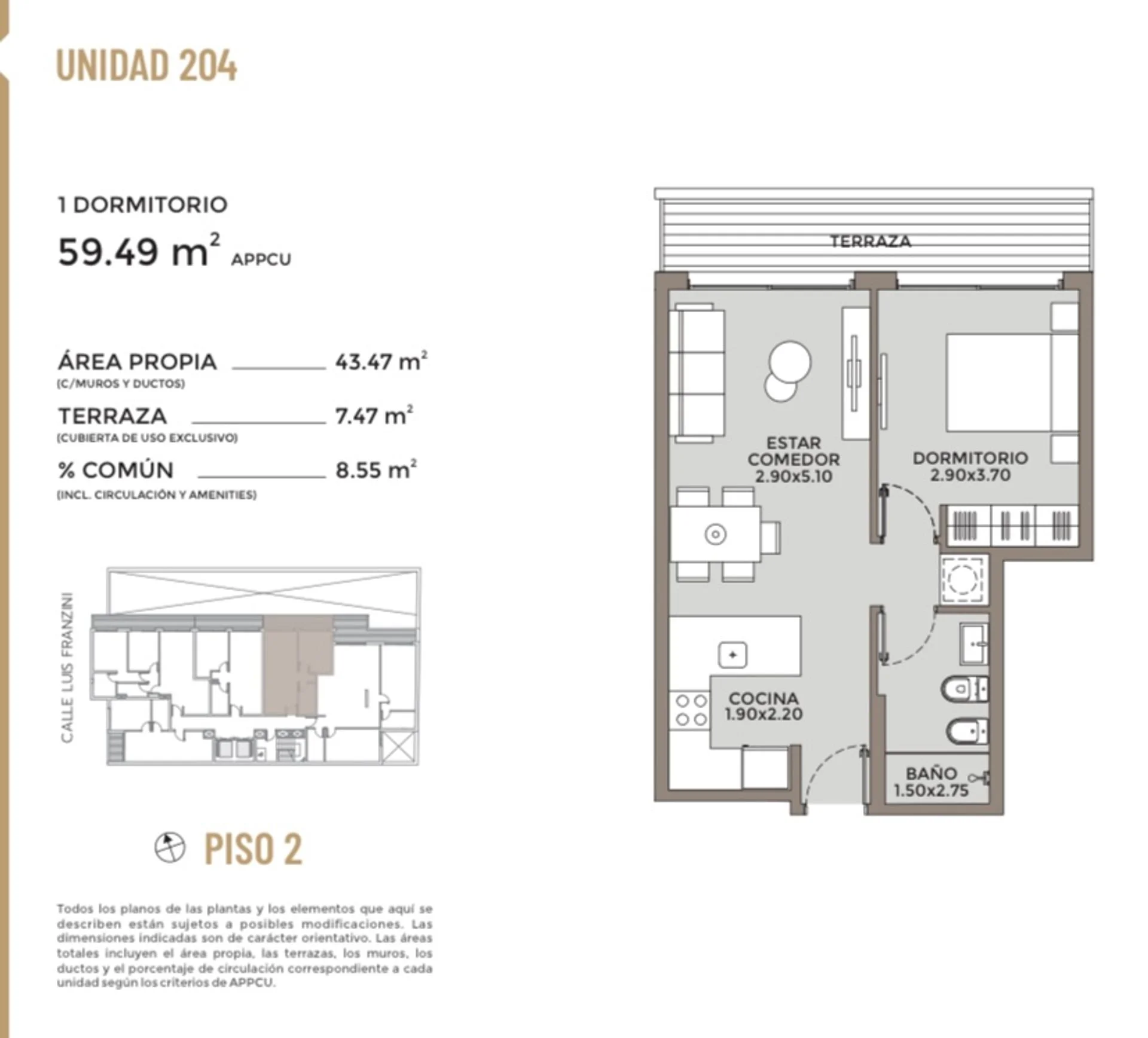 La presente publicación describe las características esenciales del inmueble, debiéndose consultar al responsable de la operación por la eventual actualización de las medidas, descripciones arquitectónicas y funcionales, servicios, impuestos, precios y demás información, cuyos valores son aproximados.