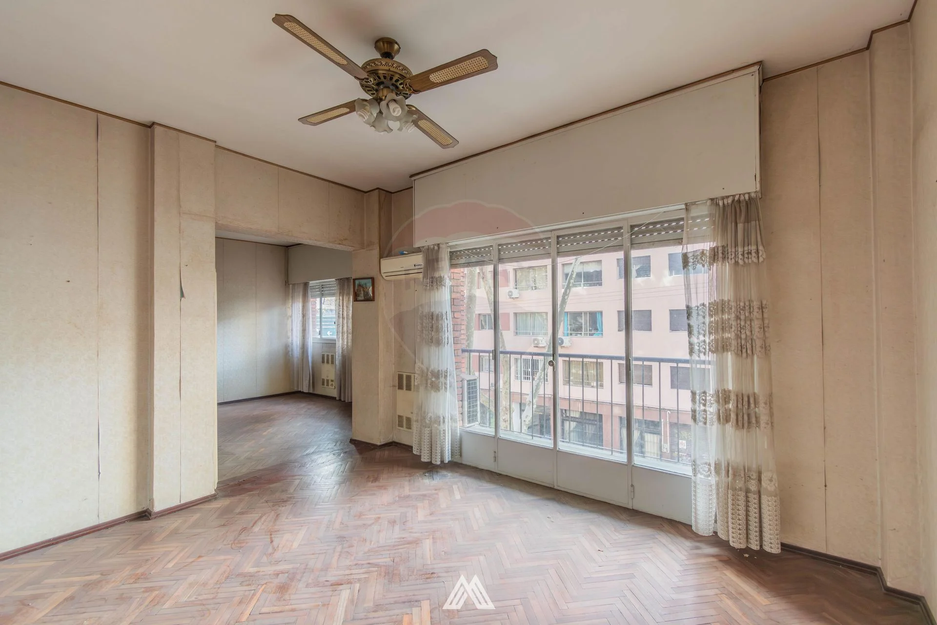 Pisos de parquet originales y aberturas con cortinas de enrollar en todos los ambientes.