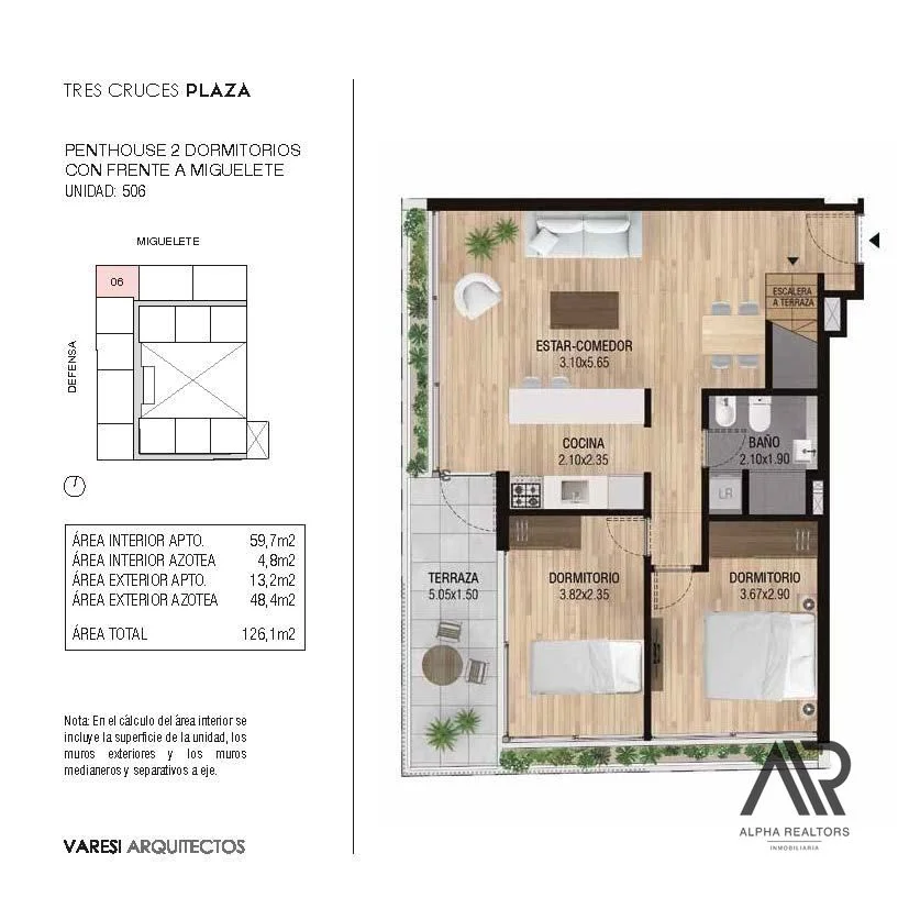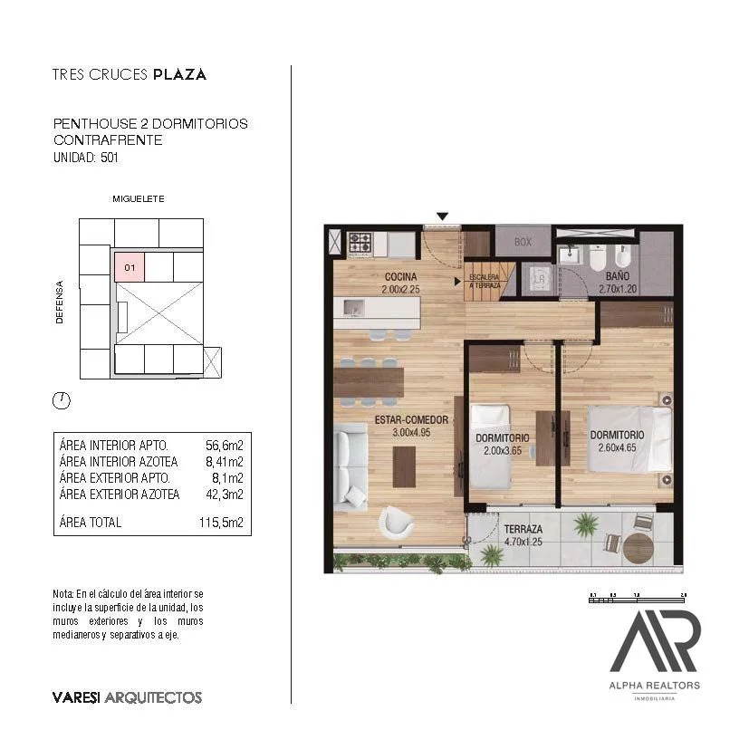 • Unidades penthouse duplex de 2 y 3 dormitorios.