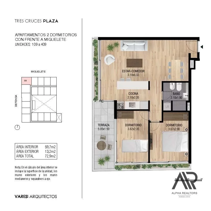 • Unidades al frente y contrafrente de 1 y 2 dormitorios.