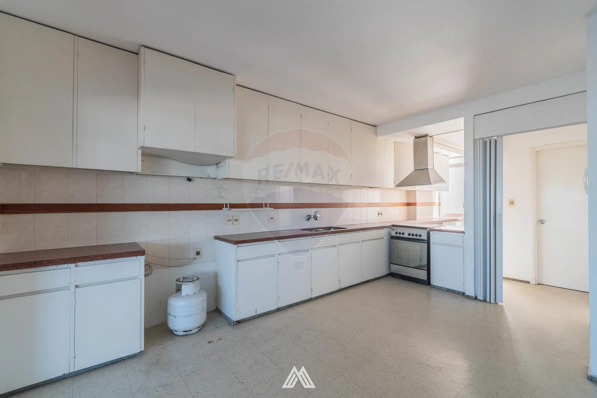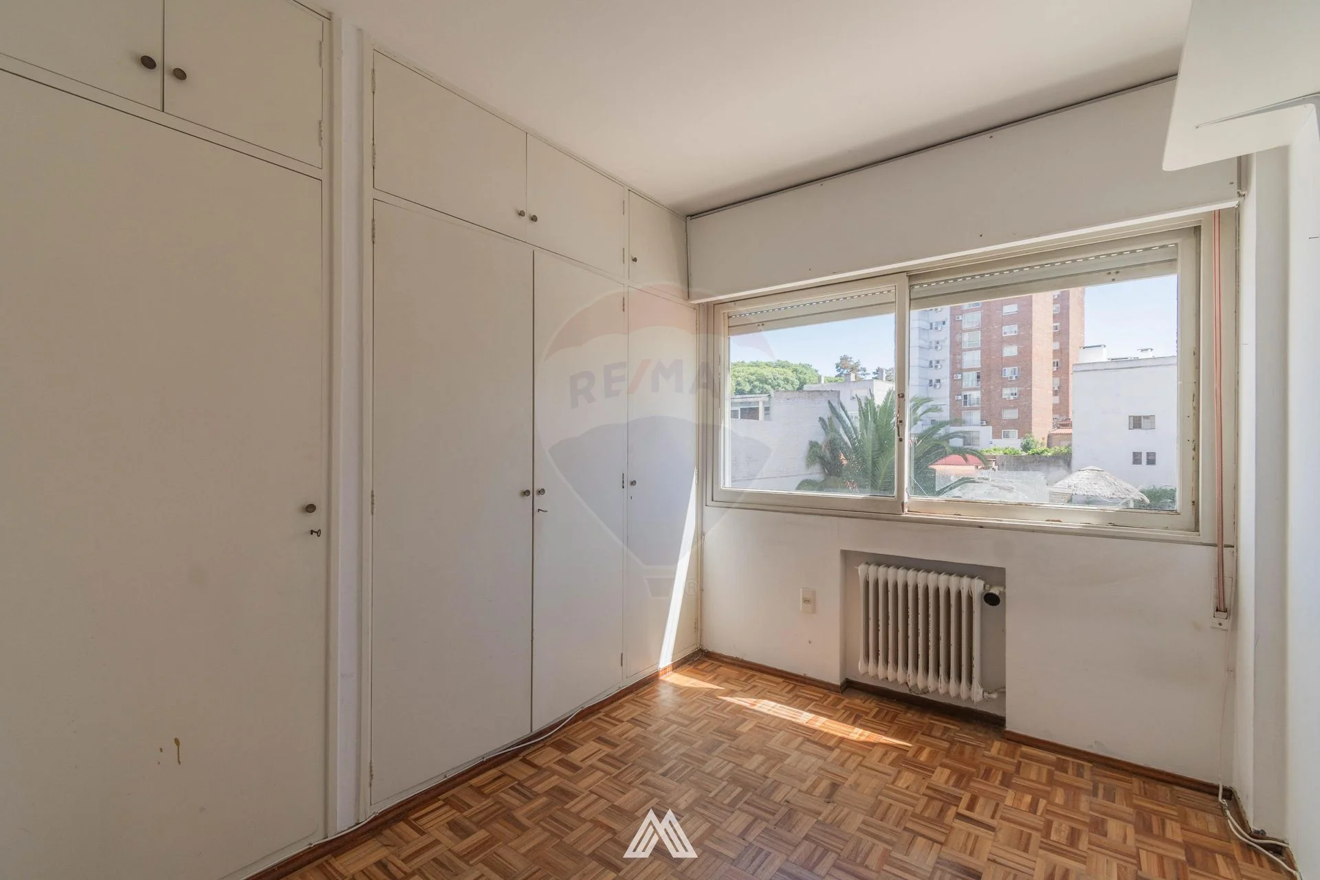 A la derecha del apartamento se encuentra el ambiente de la cocina comedor, muy amplia y cómoda, y el servicio completo. Dos dormitorios al contrafrente despejado, con orientación Norte.