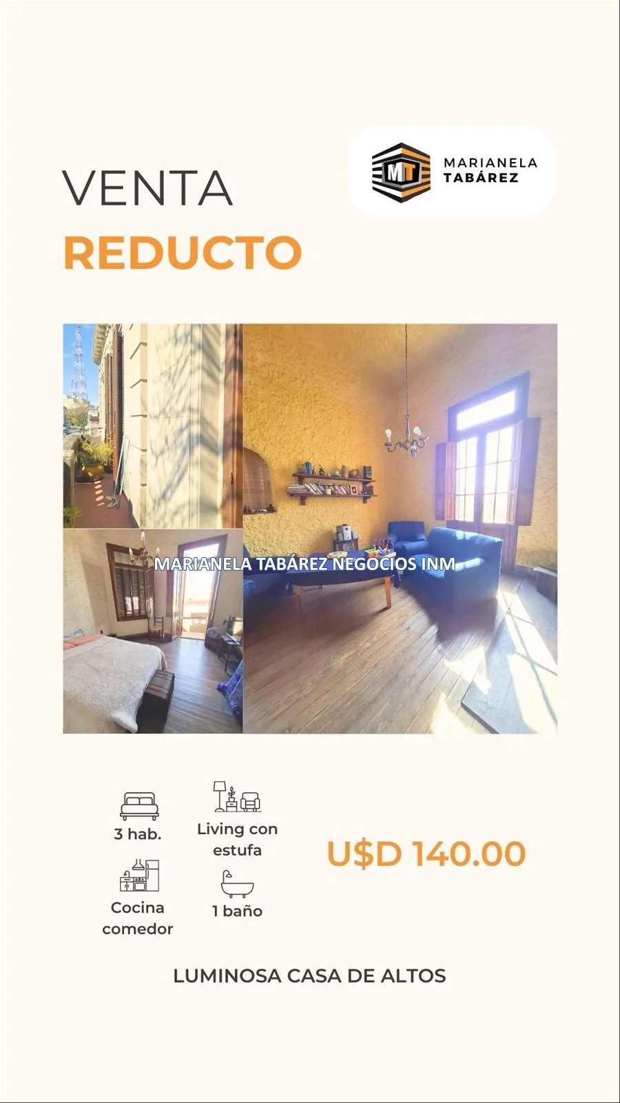Venta Casa 3 Dormitorios De Altos En Reducto Con Estufa A Leña Y Parrillero