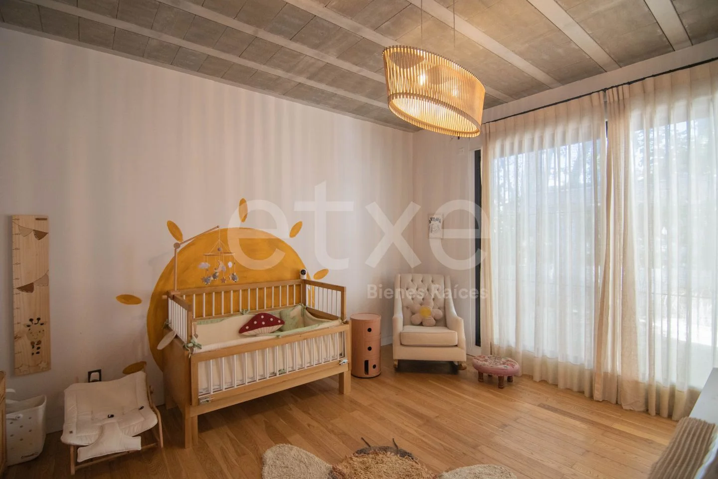 En la planta alta, se encuentran tres dormitorios. El principal es en suite, con vestidor y salida a una terraza. Uno de los dormitorios secundarios también cuenta con placard y acceso a una terraza.