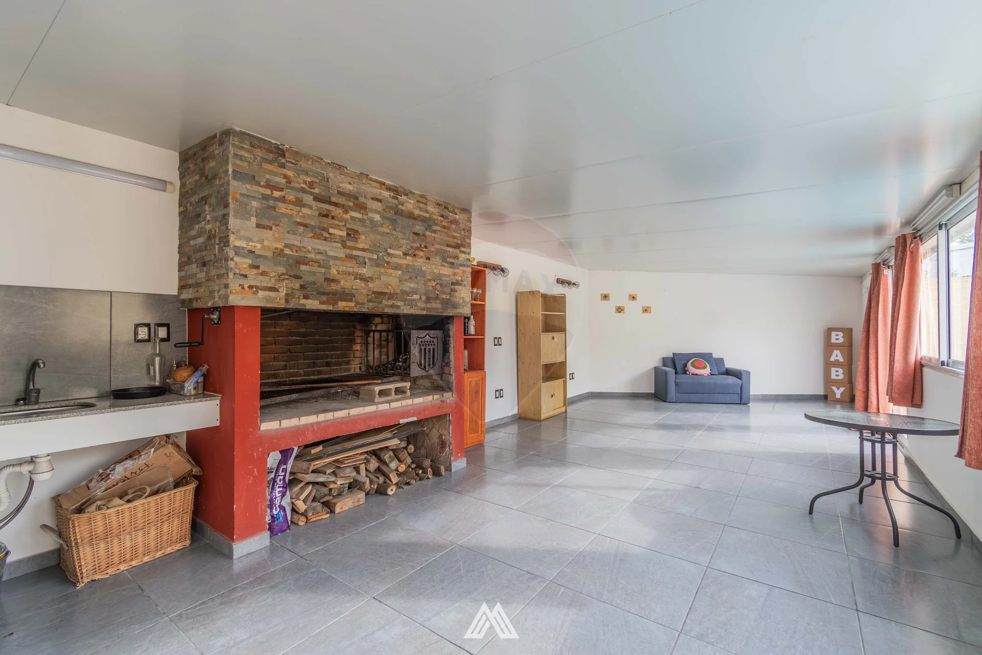 Barbacoa cerrada con parrillero y baño.