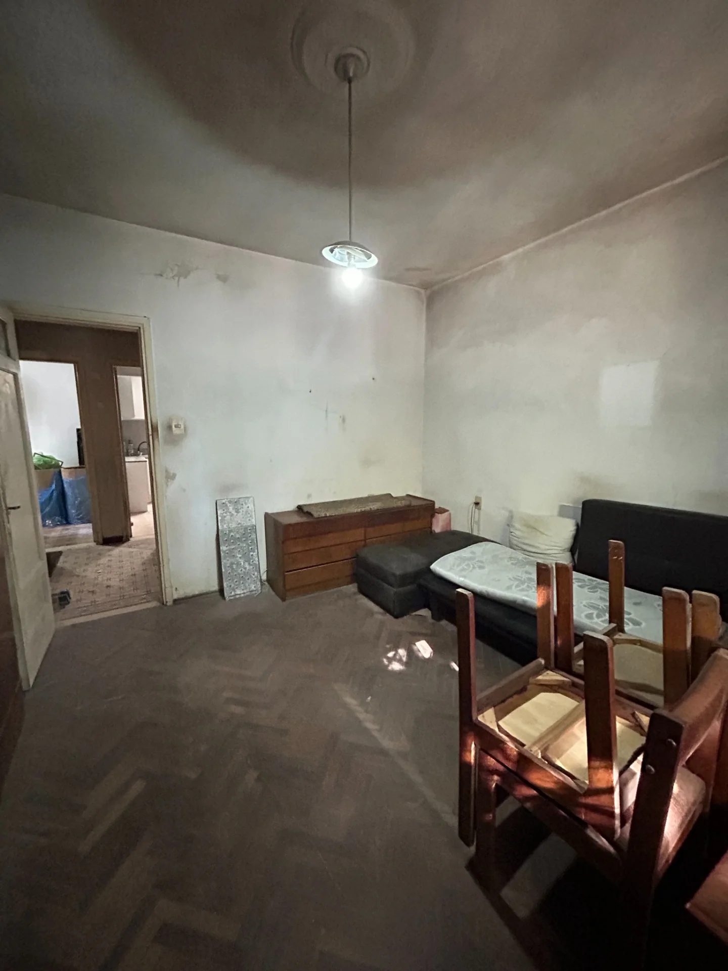 Living comedor al frente, 2 dormitorios, 1 al frente el otro hacia el patio. Cocina definida hecha a nuevo y baño completo hecho a nueva. Hay que hacerle mantenimiento de pintura. Pisos en muy buen estado.
