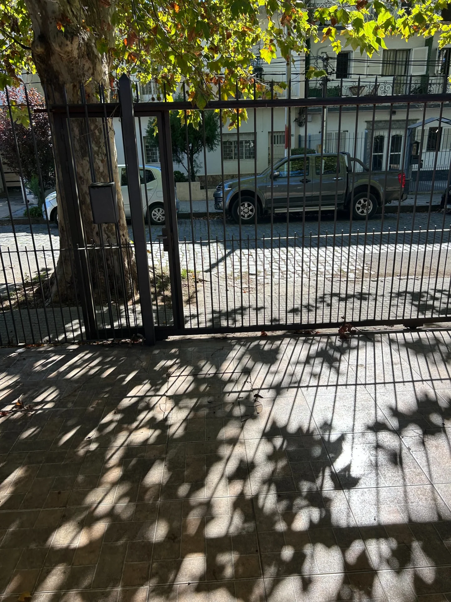 Jardín al frente (34m2) con rejas y portón, lugar para dejar 1 o 2 autos.