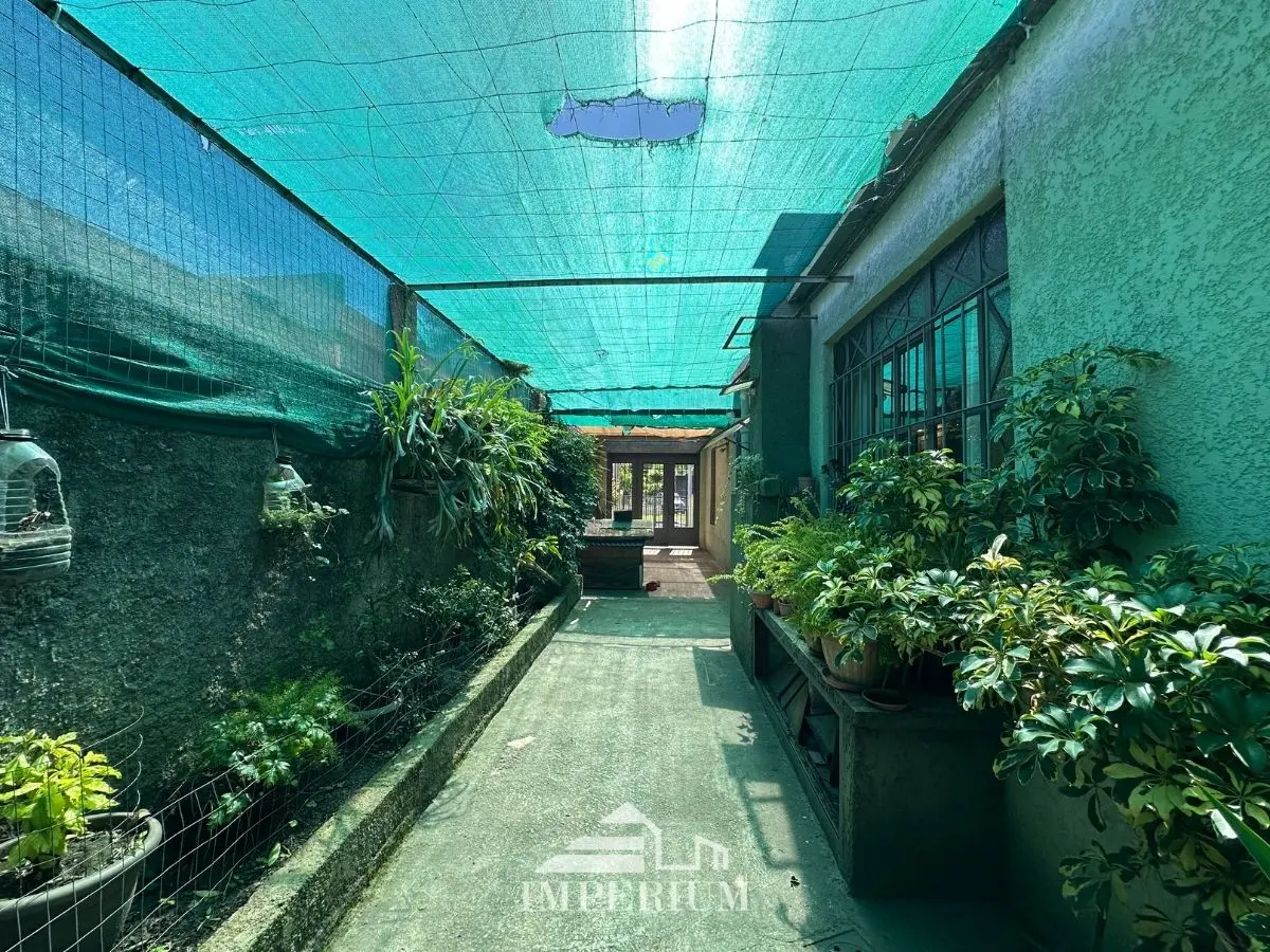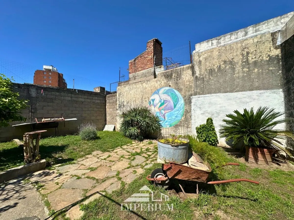 Un hermoso patio de frente y de fondo con jardín.