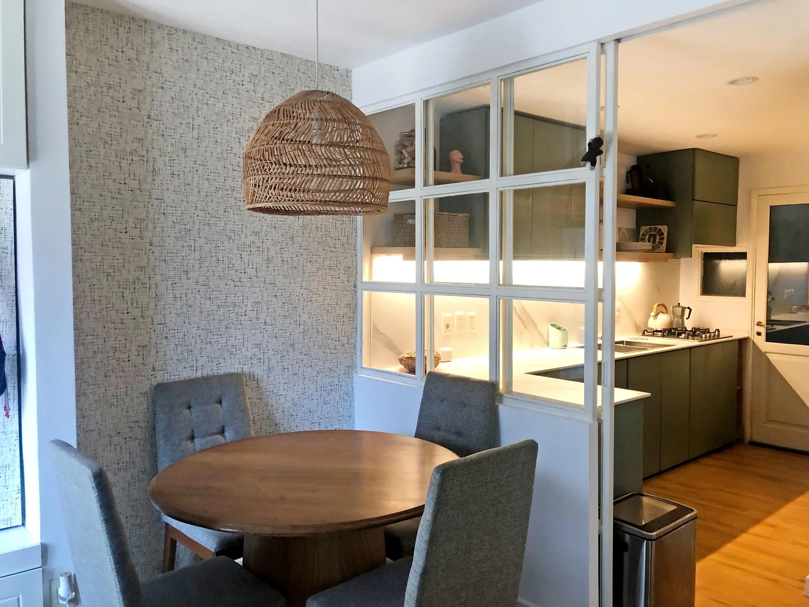 Cocina moderna con mesada dekton y mucho espacio de guardado.