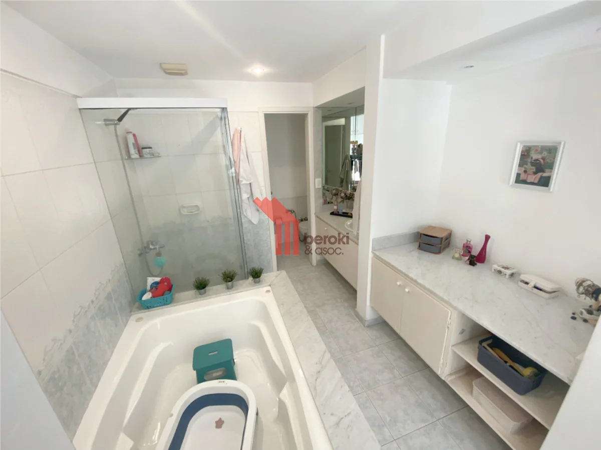 - Dormitorio Principal: amplio, al frente con ventanales DVH y persianas, ropero empotrado, unidad de AA y gran baño en suite semi-integrado. Este baño cuenta con yacuzzi, ducha independiente con mampara y el inodoro también es independiente y con puerta. Doble mesada amplia y bacha.