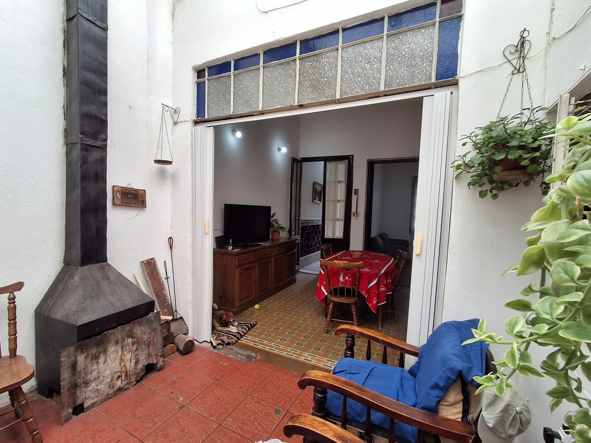 Al frente, Living-comedor amplio con estufa a leña y claraboya corrediza, 4 dormitorios, uno en planta alta con balcón.