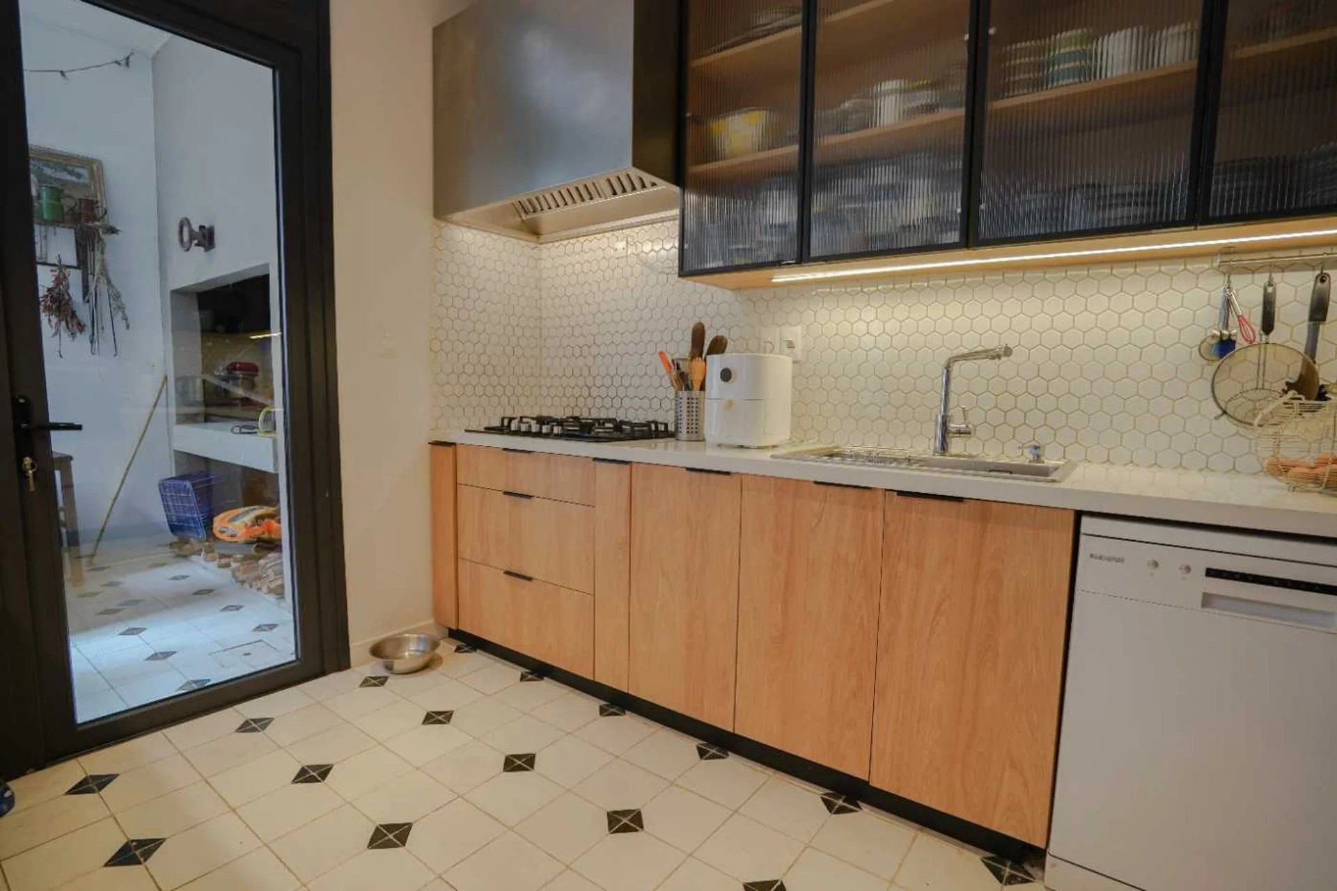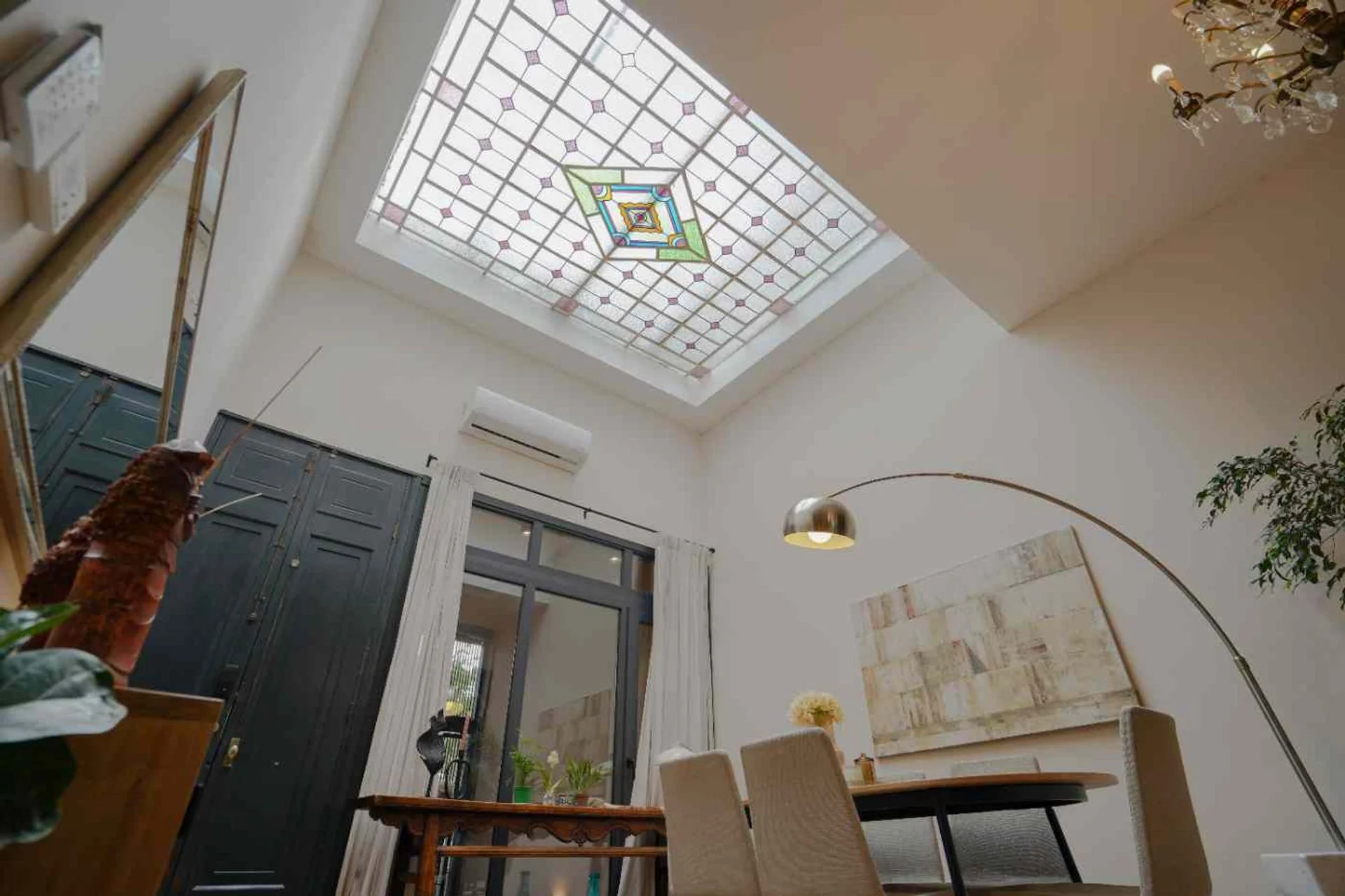 El ingreso se realiza a través de un amplio zaguán que conduce a un ambiente principal luminoso, caracterizado por ventanales amplios y vitrales originales que aportan luminosidad y estilo distintivo. El sector social integra living con estufa a leña , comedor y cocina en un espacio continuo y funcional.