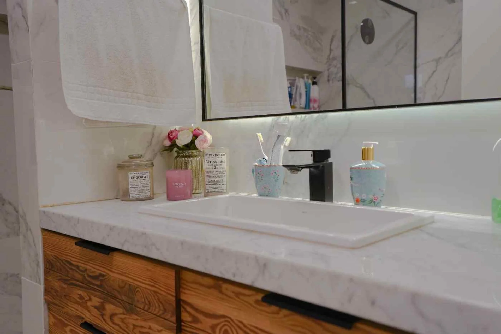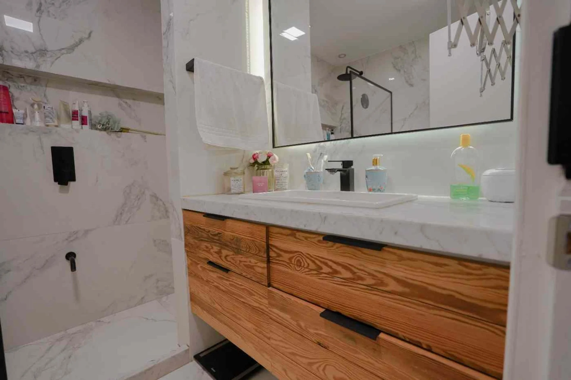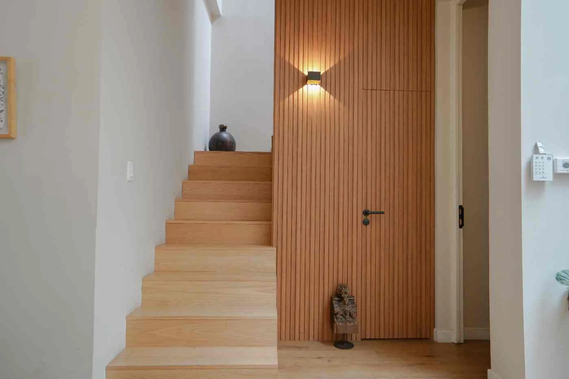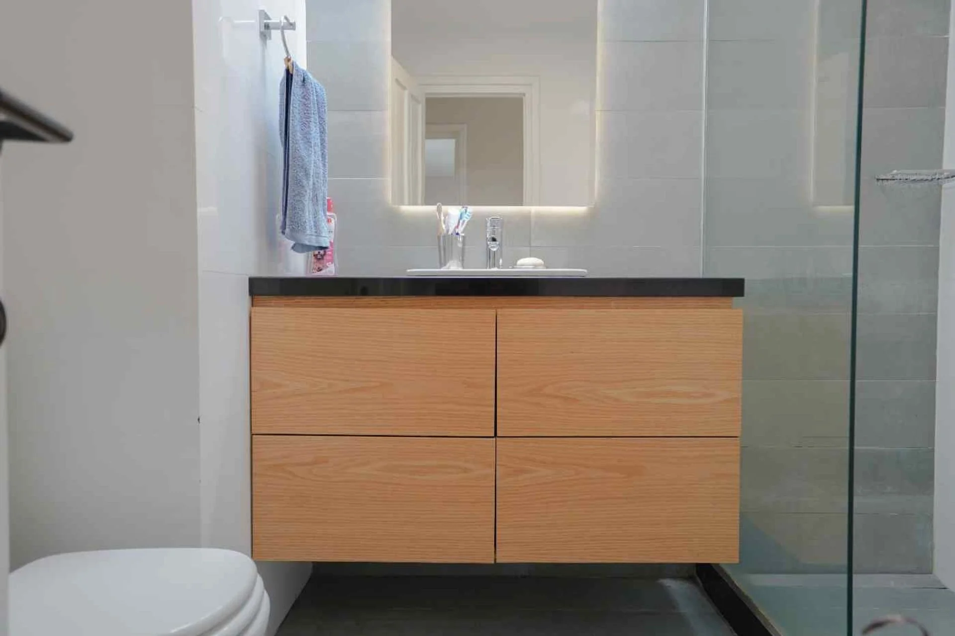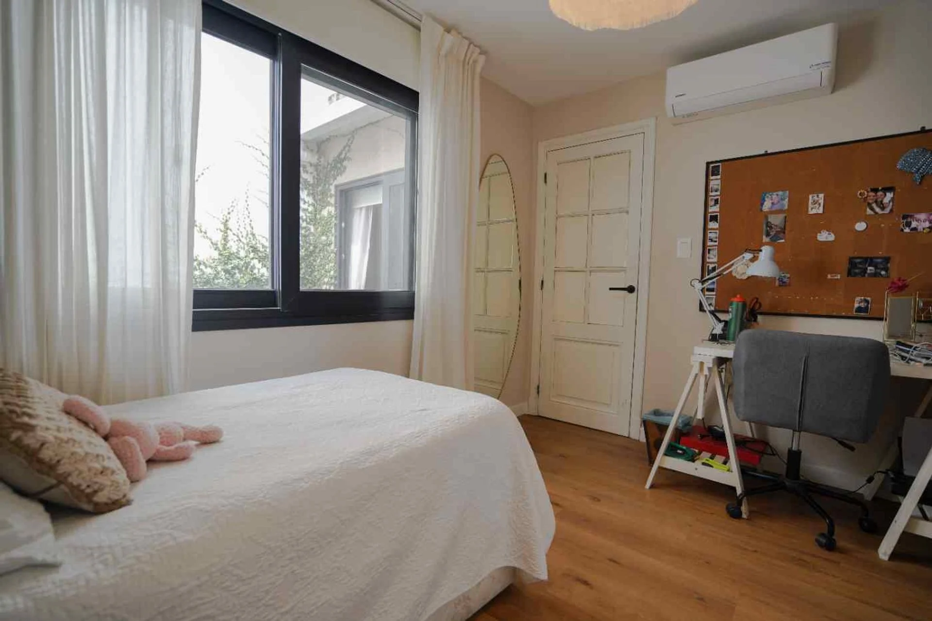 En el nivel superior se ubican dos dormitorios amplios y luminosos que comparten un moderno baño completo. Además, cuenta con un área versátil que puede destinarse a estar, playroom o escritorio, y una gran terraza con deck de lapacho.