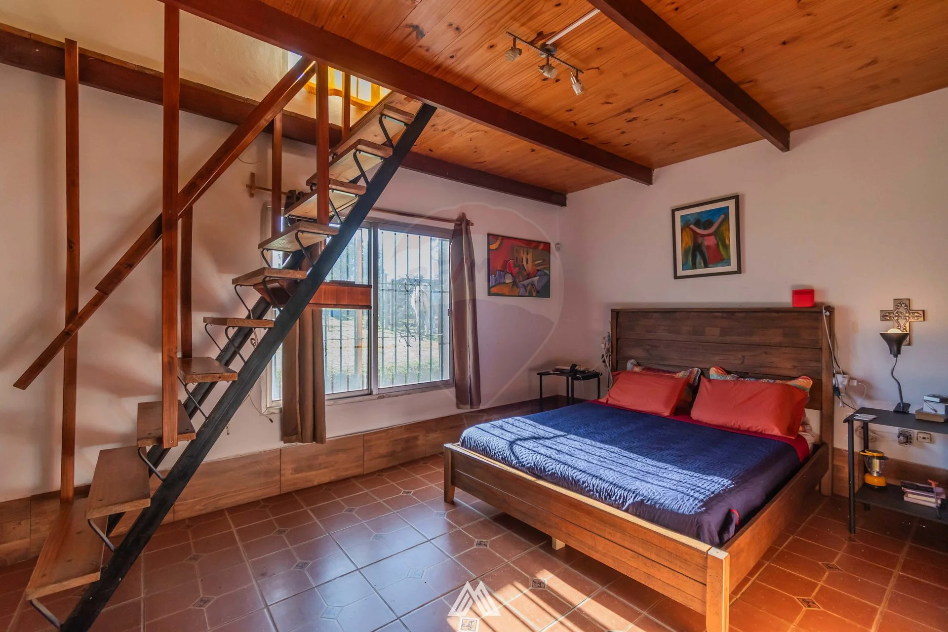 – Casa principal con 3 dormitorios (dos unificados como hostel), baño y entrepiso en el dormitorio principal