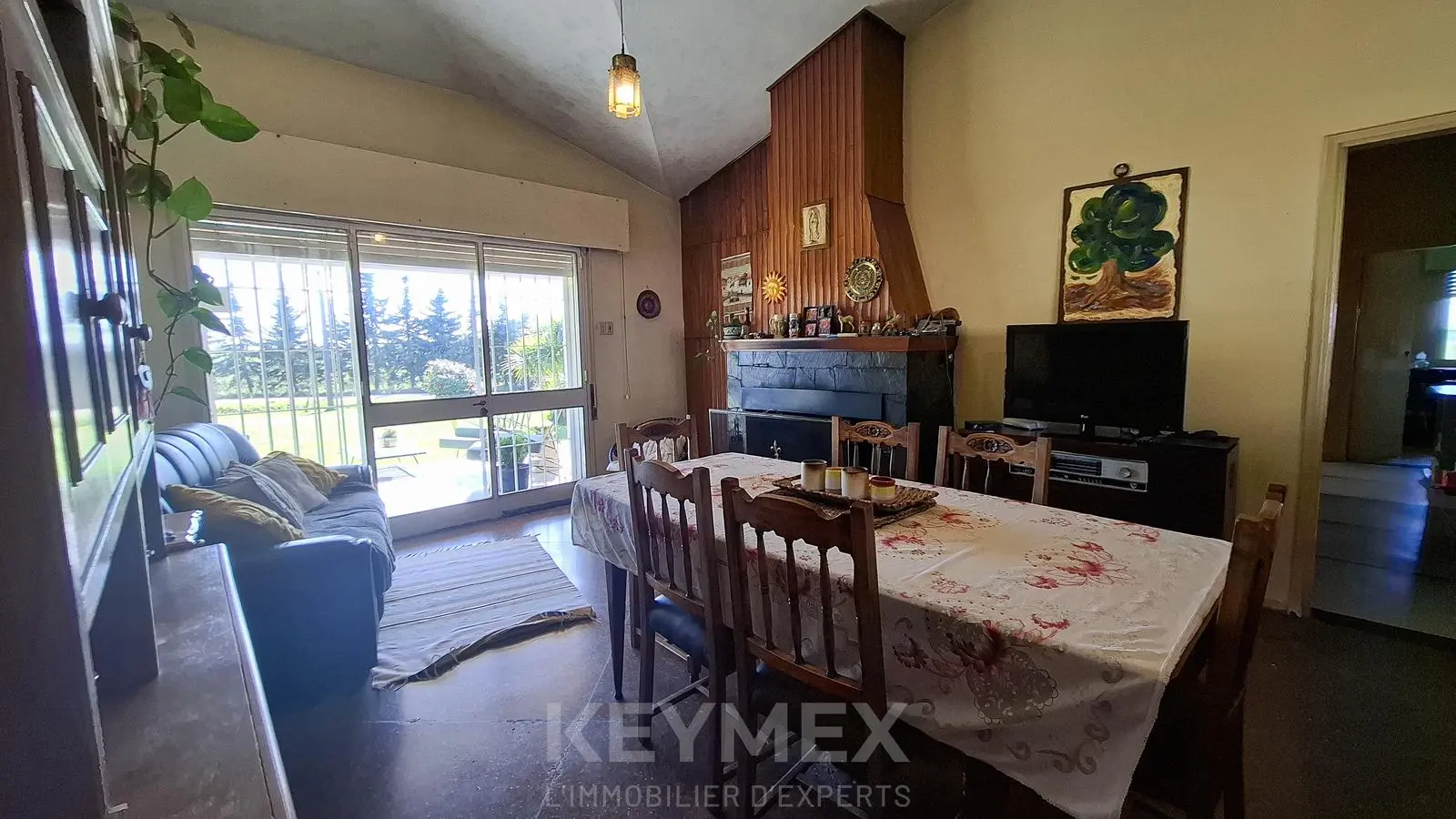 Un living amplio y definido que se conecta en forma independiente a un amplio comedor con cocina integrada y estufa a leña. Este ambiente se abre a través de una puerta ventana a uno de los hermosos porches agrandando de esta manera el espacio al exterior para disfrutar del verde de su frente.