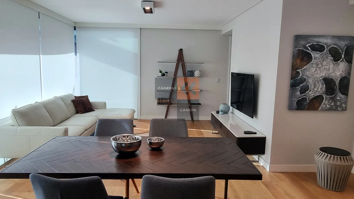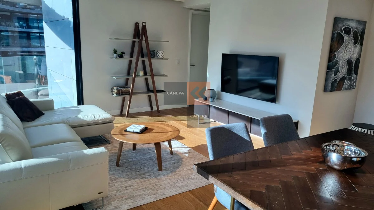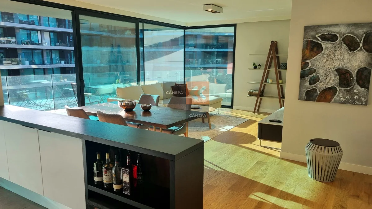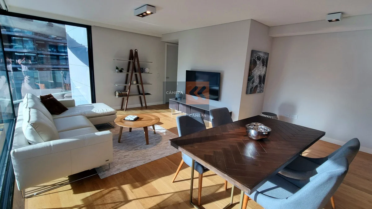 Amplio living con ventanales de piso a techo, doble vidrio y salida a terraza