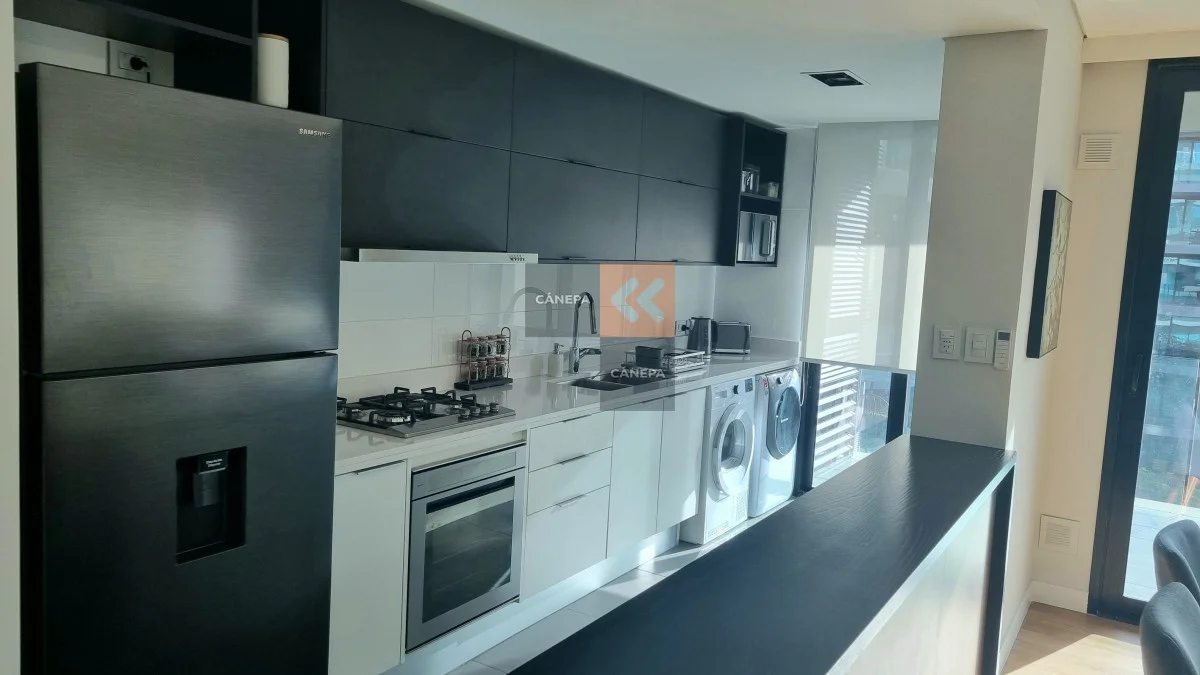 Cocina con barra y muchos placares, y salida a terraza lavadero con lavarropas y secarropas. Cuenta con heladera, horno y microondas de calidad premium