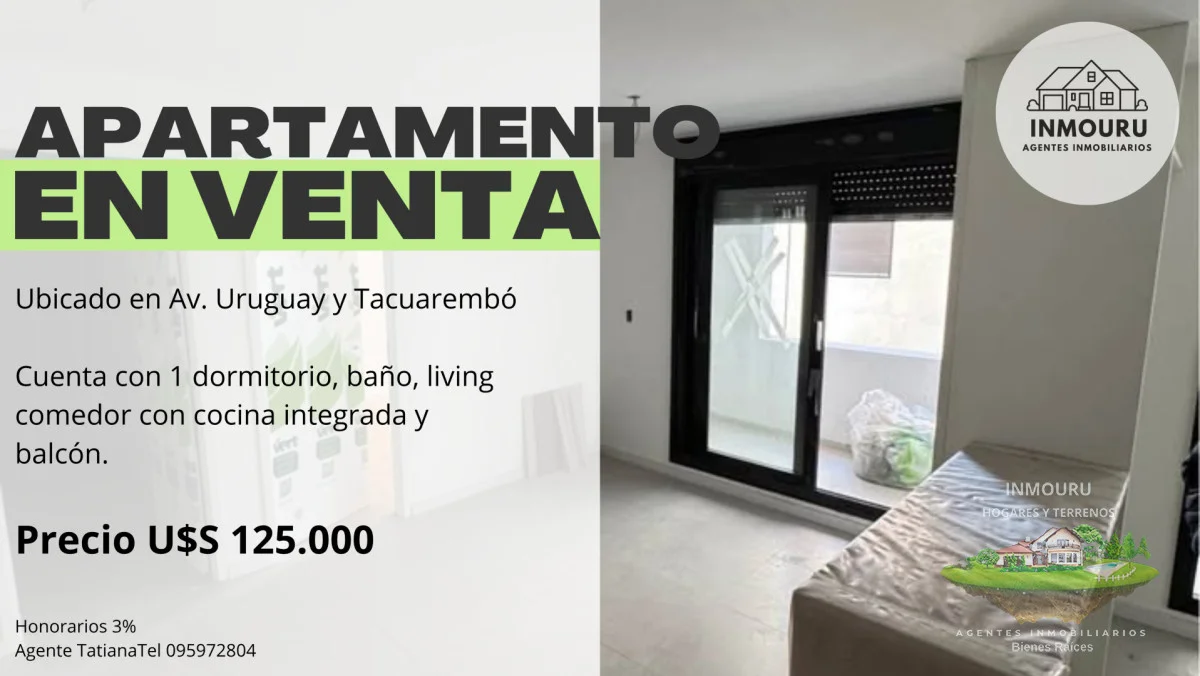 Venta de Apartamento en Cordón a estrenar Precio U$S 125.000 Cuenta con 1 dormitorio, baño, cocina integrada a living comedor. Balcón de 6 metros cuadrados completando 46 metros cuadrados todo el apartamento. Los pisos de porcelanato de alta calidad, grandes ventanales con aberturas de aluminio y vidrio doble (DVH). Preinstalación para aire acondicionado en living y dormitorio. Terraza lavadero individual. Rooftop con salón de usos múltiples y parrillero totalmente equipado. Gastos de Ocupación: 4% Honorarios 3% Agente Tatiana Referencia Interna : Tera-2063