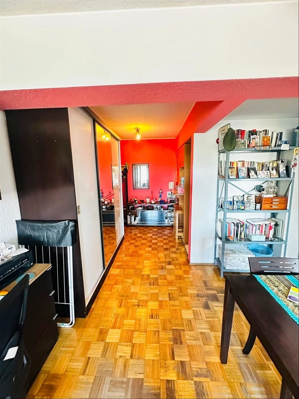 -Living comedor al frente, con vista hacia 18 de Julio. pisos de parquet y aire acondicionado.