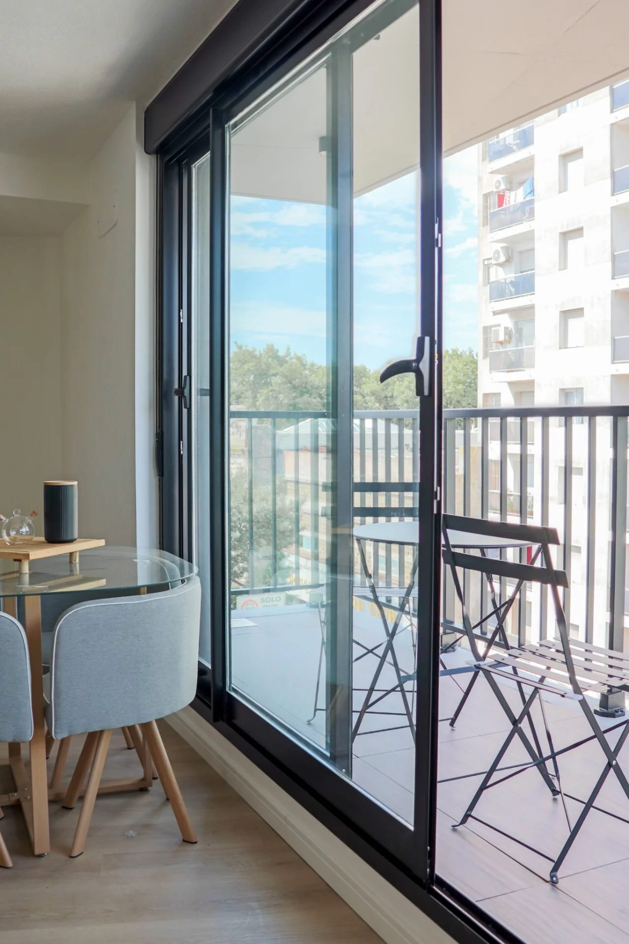 -Aberturas exteriores en aluminio anodizado negro con doble vidrio hermético.