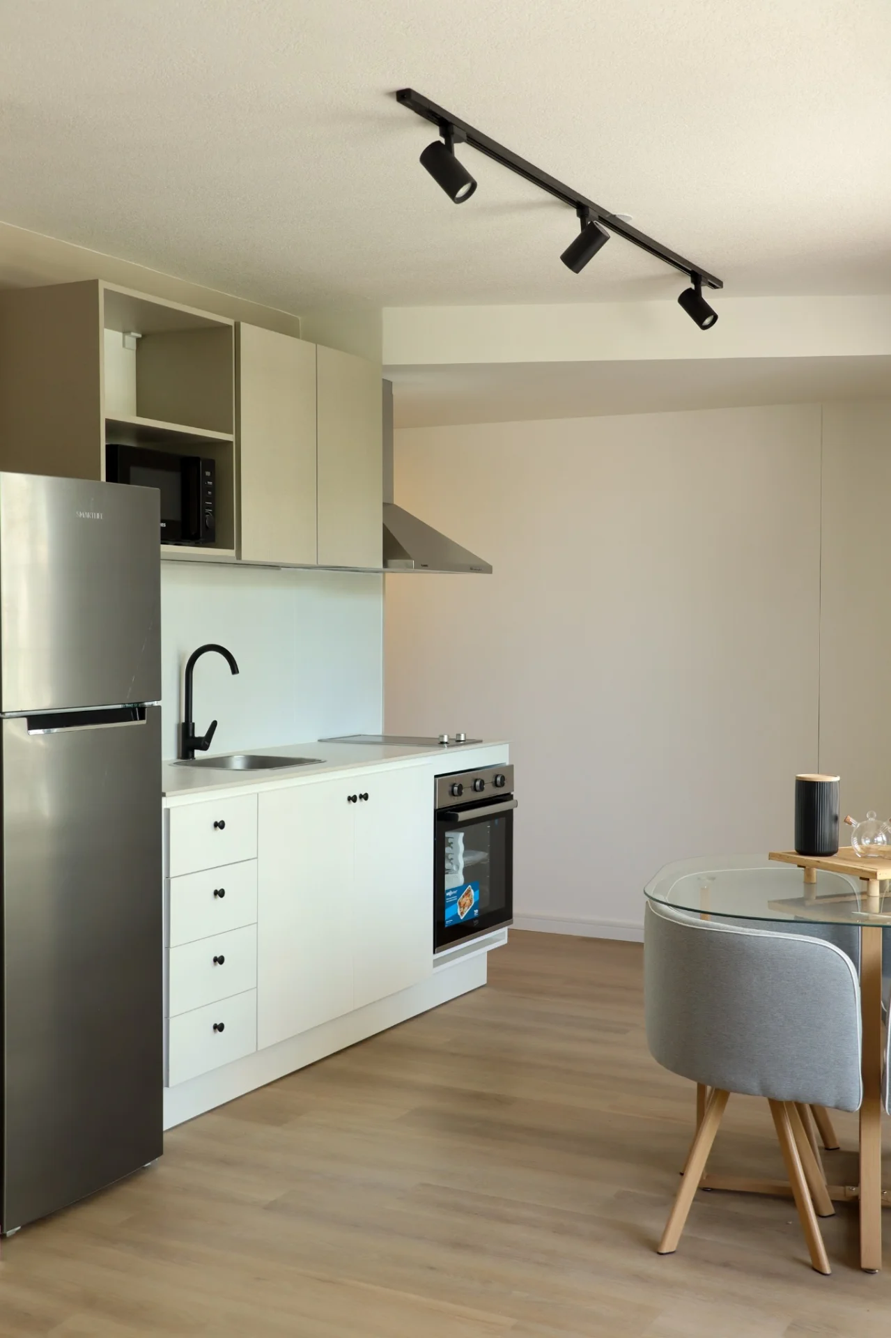 -Cocina integrada, equipadas con muebles aéreos, bajo mesada, campana y extractor.