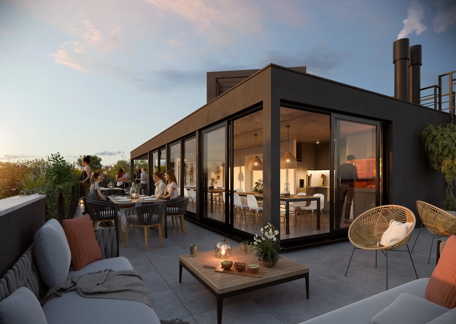 En la azotea se encontraran las amenities: parrillero cerrado, parrillero exterior, terraza y espacio de tenders.