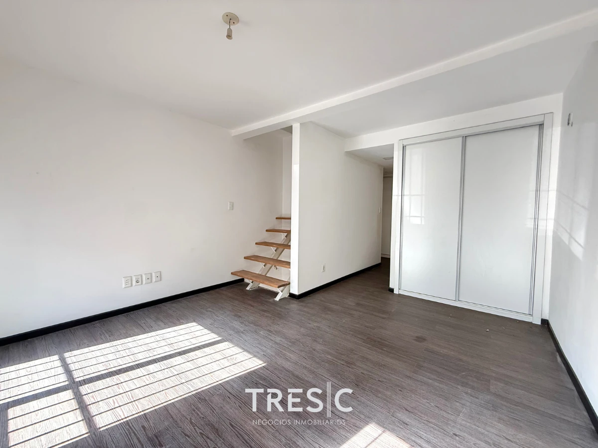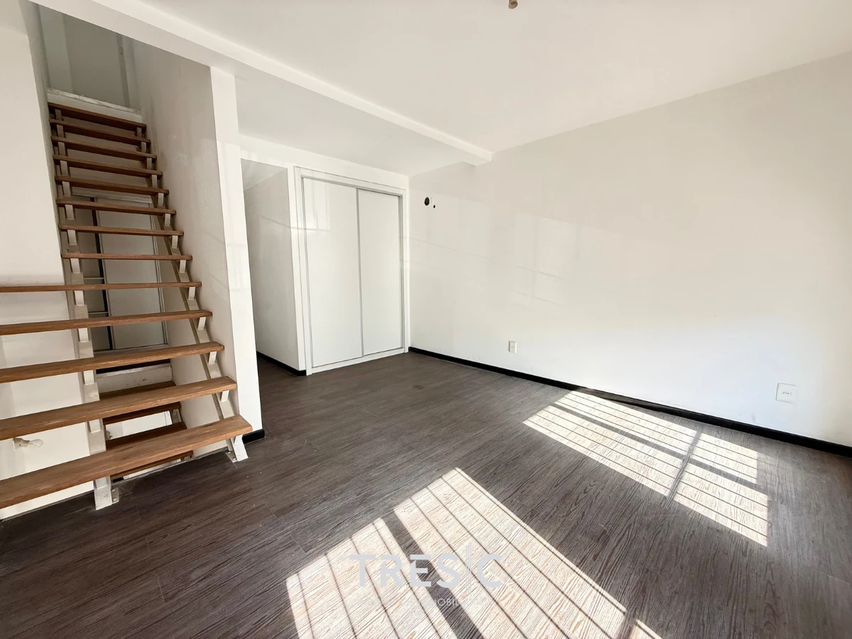 El dormitorio de buen tamaño cuenta con otro placard empotrado de generosas dimensiones y ventanas que brindan muy buena iluminación. Desde allí accedemos a un segundo tramo de escaleras que conecta con la azotea exclusiva. En el descanso previo se dispone de la conexión prevista para lavarropas.