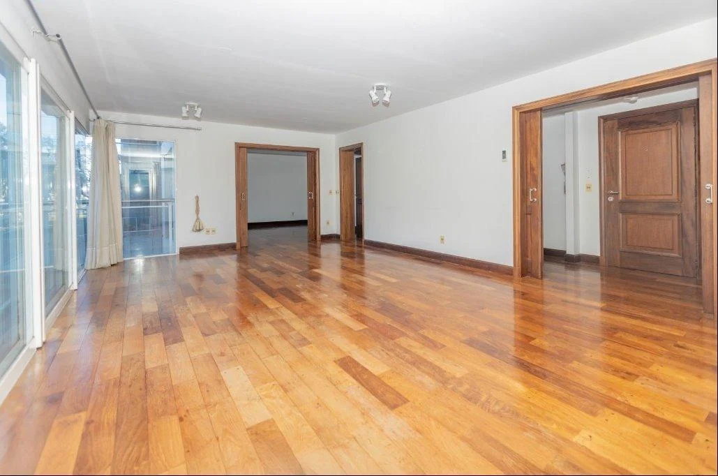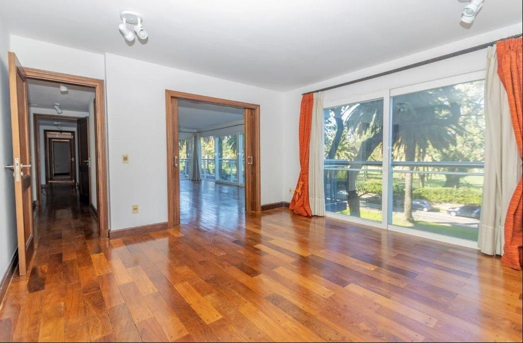 Única unidad en el piso. Cuenta con hall de recibo, recepción compuesta por living con balcón y comedor principal (posible estar), cocina con doble mesada y varios placares con acceso a parrillero propio, 3 dormitorios principales (2 en suite, 1 con vestidor, resto con placares) más 1 dormitorio de servicio, 5 baños (social, principal, 2 en suites y el de servicio), terraza lavadero y lugar de garaje para 2 autos.
