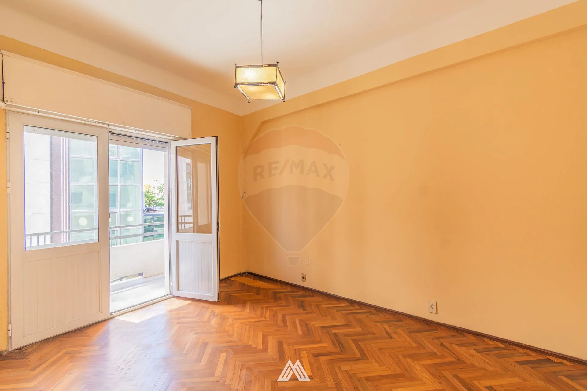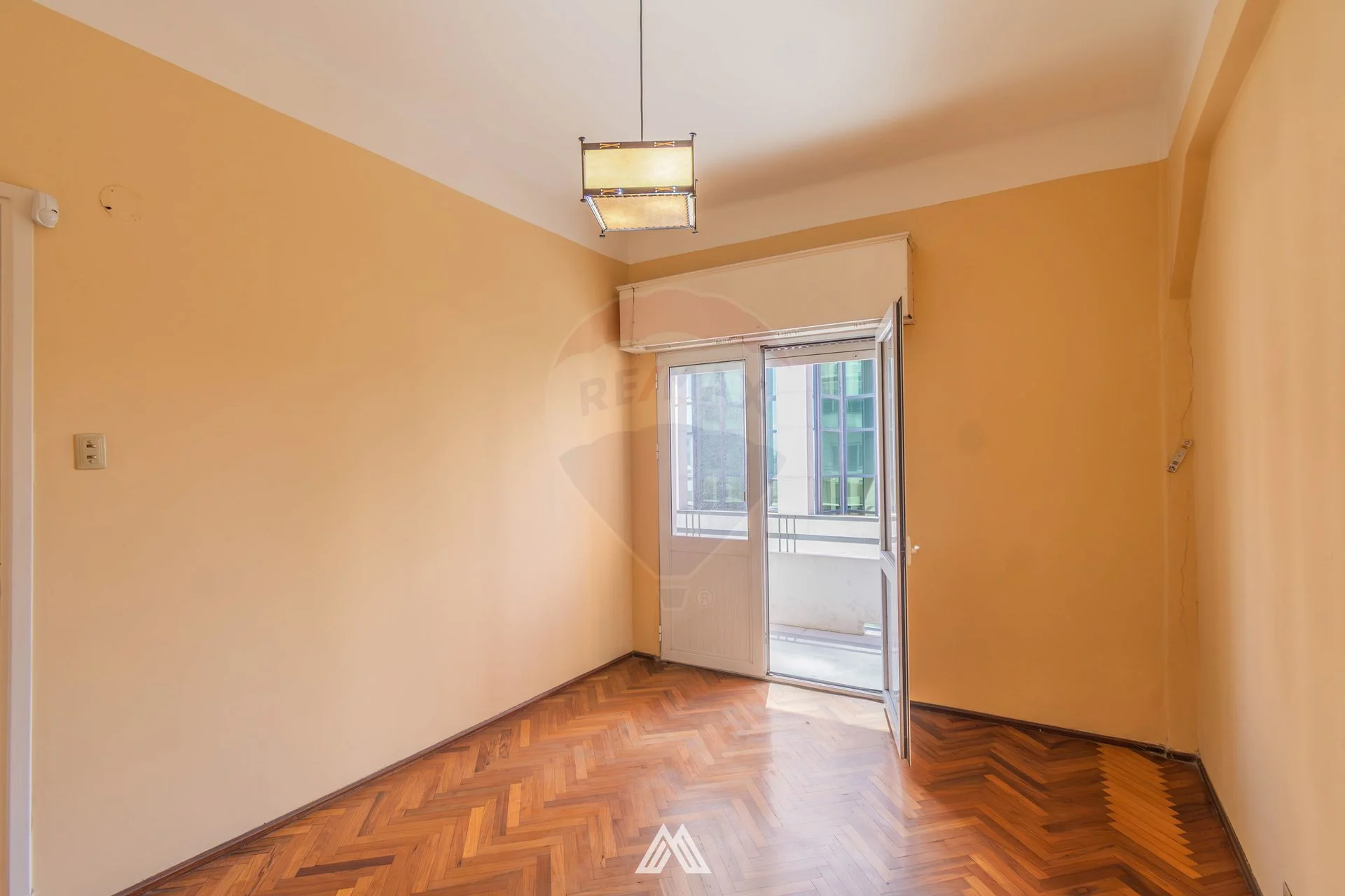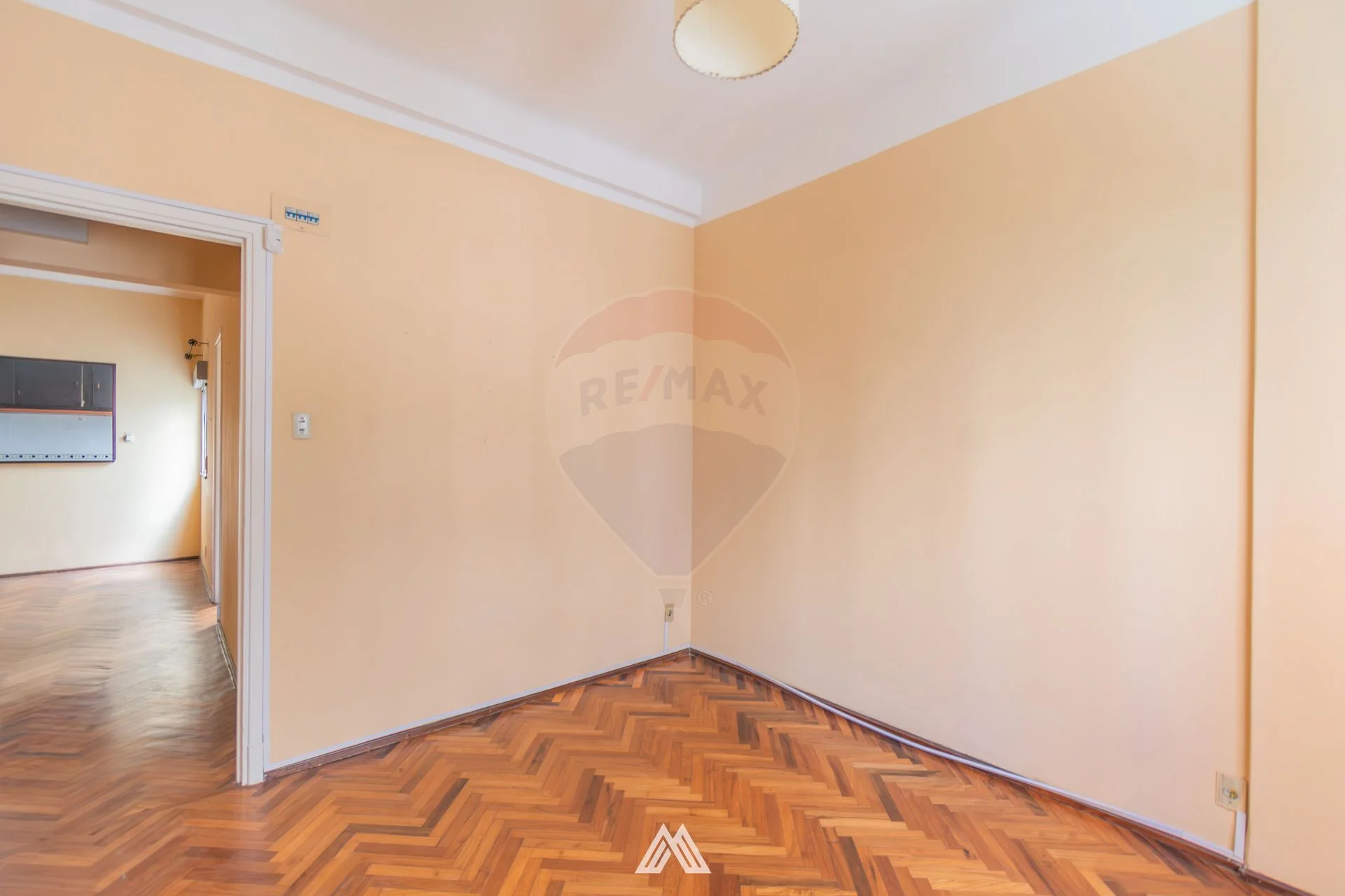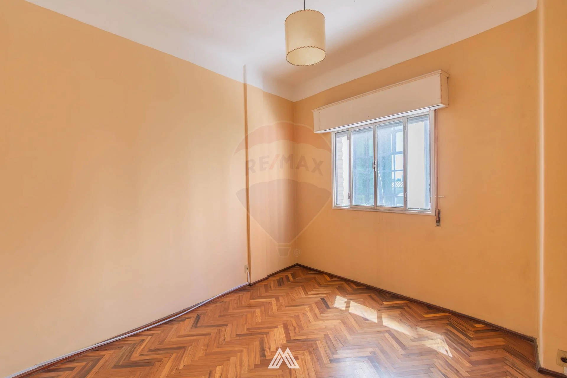 El apartamento presenta pisos de parquet originales plastificados en excelente estado, persianas funcionales en dormitorios y living-comedor, y un baño completo con mampara de vidrio templado y revestimientos con cerámica española.