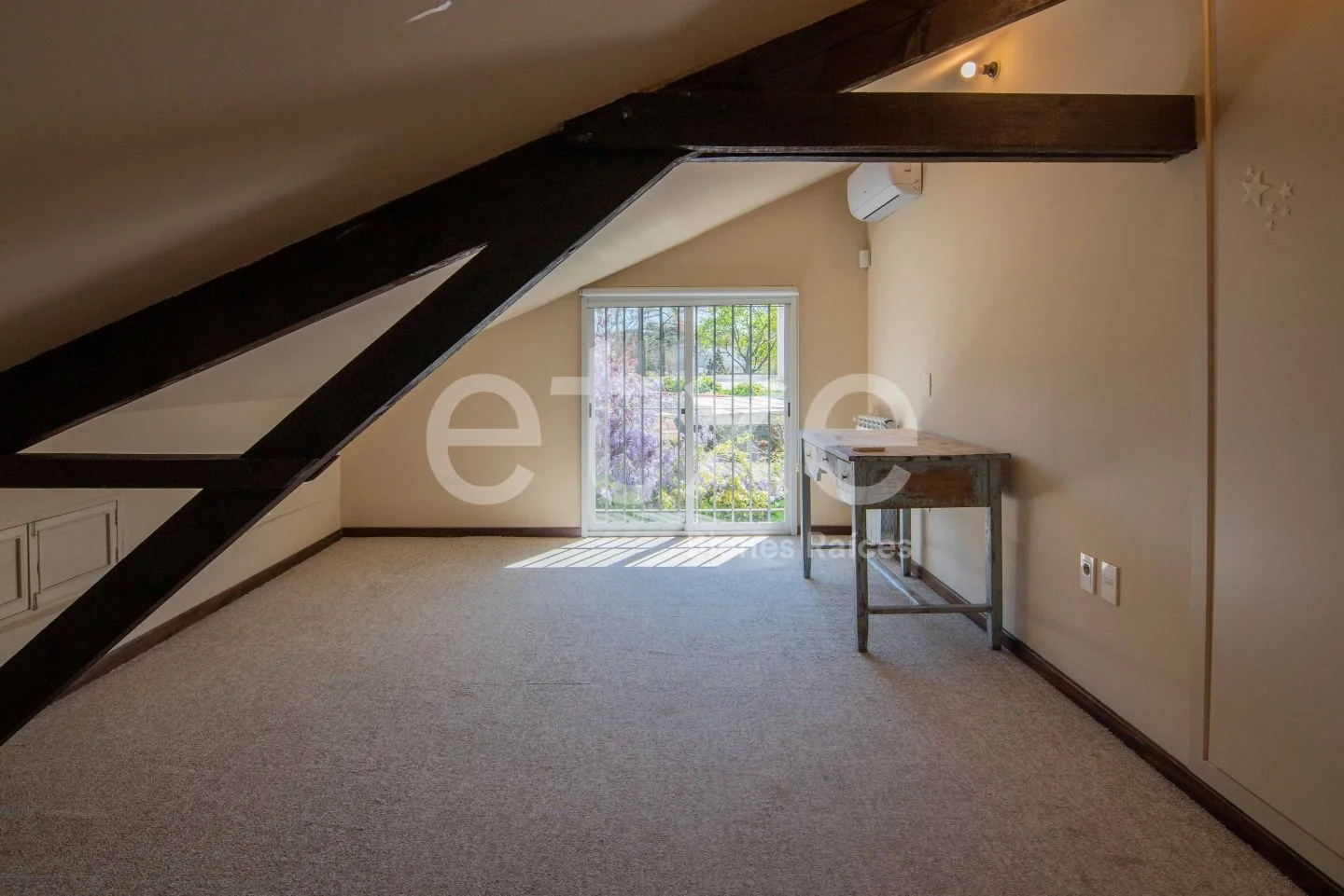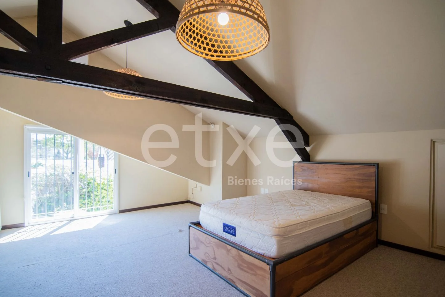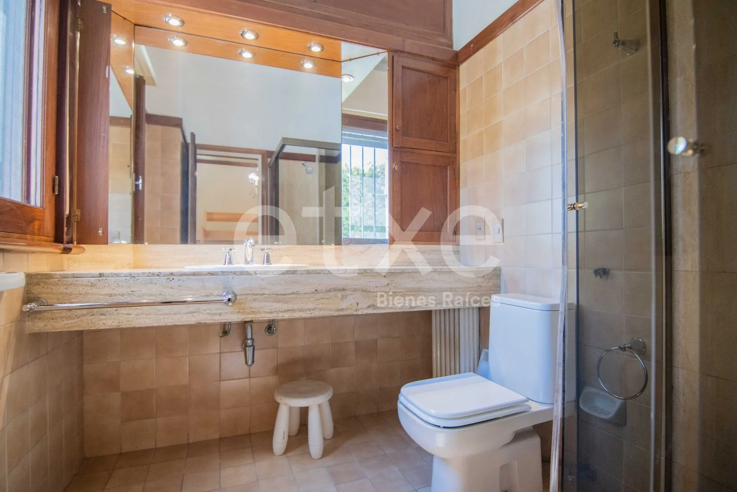 En planta alta dispone de cuatro dormitorios: dos en suite y otros dos que comparten un baño y un espacio de estudio. Completa la planta una amplia buhardilla de gran versatilidad.