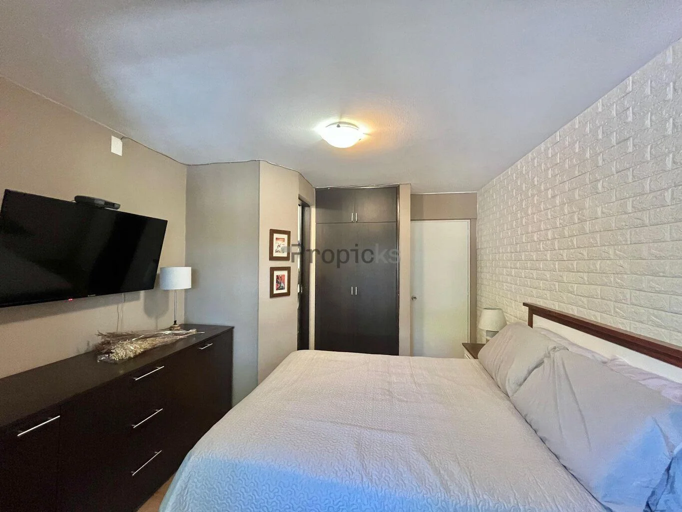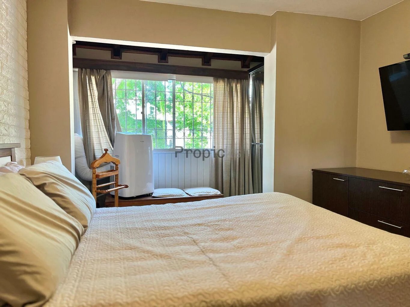 La casa dispone de tres dormitorios definidos, dos de estos con aire acondicionado, uno de ellos con baño en suite, y un cuarto ambiente que ofrece un espacio adicional, posible para destinarse como escritorio o cuarto dormitorio.