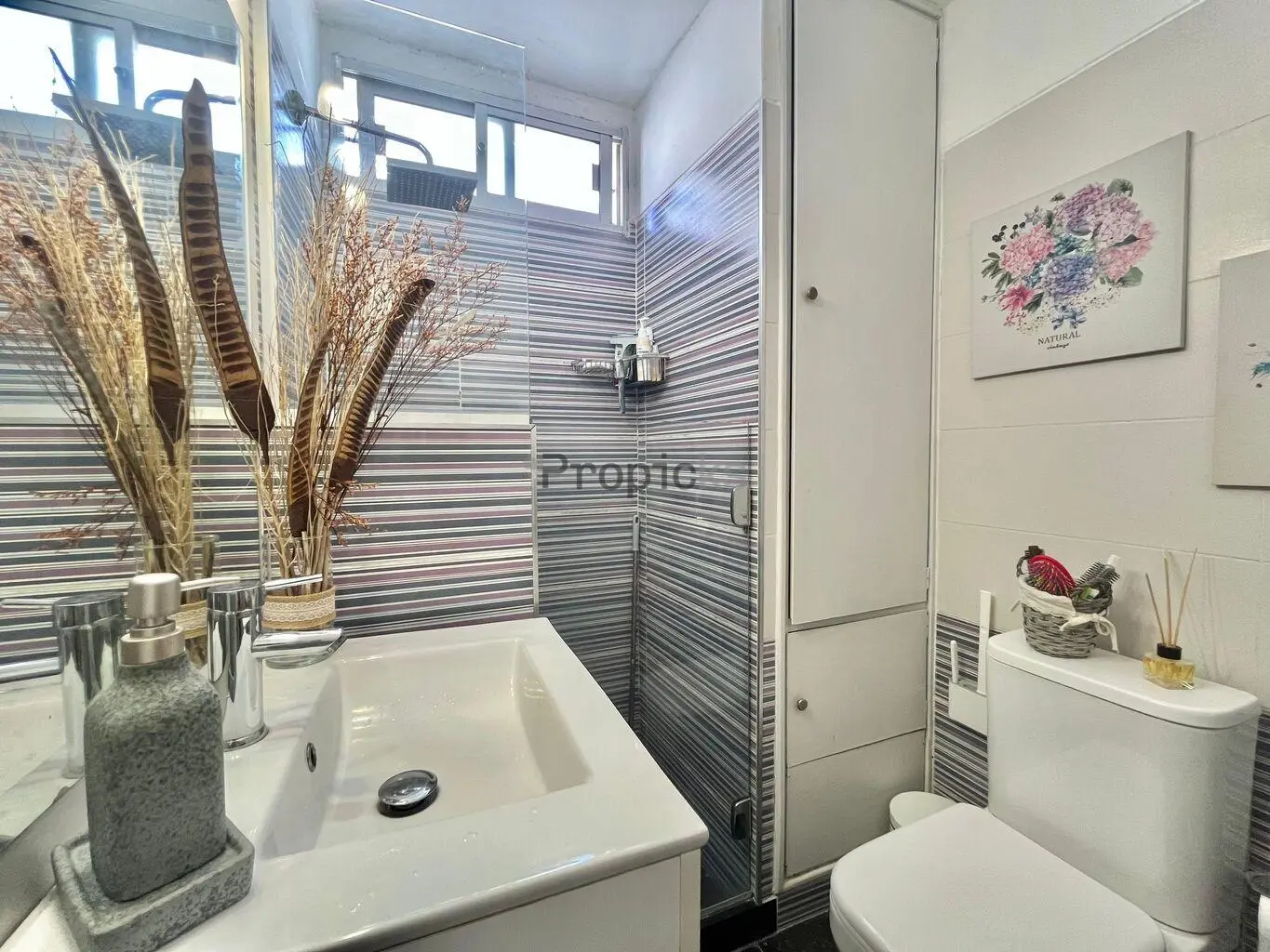 El baño es completo, actualizado y equipado con mampara y placard.